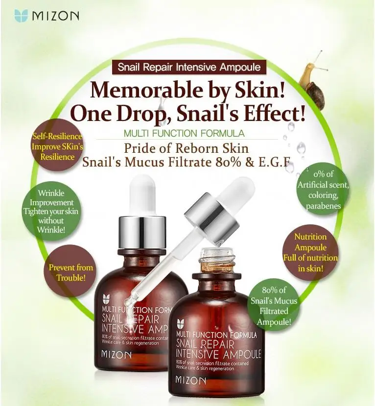 Особенность: Восстанавливающий Крем MIZON All In One Snail 75 мл Mizon All In One Snail Repair Cream-это самый продаваемый крем, который продается миллионами по всей Азии благодаря высокоэффективным ингредиентам. Формулируется с помощью whopping 92% экстракта слизи улитки, он обеспечивает выдающуюся регенерацию и восстановление кожи. Этот инновационный крем увлажняет, способствует уменьшению появления рубцов и пятен от прыщей, помогает улучшить внешний вид тонких линий. Идеально подходит для жирной и склонной к акне комбинированной кожи. Не идеально подходит для сухой кожи, Но те, у кого сухой тип кожи, могут наносить этот крем под более тяжелый увлажняющий крем. MIZON Snail Clear оживляющая ампульная эссенция 30 мл 1. Фильтрат слизи улитки 80% и E.G.F способны улучшить упругость уставшей кожи. 2. Также он ухаживает за сложными проблемами, возникающими при солнечном освещении кожи, как при неприятностях, сухости и т. Д. 3. Предназначен для прямого прикосновения улитки viscisity: обеспечивает питание и помогает более гибкому уходу с плотной вязкостью. Восстанавливающий крем для глаз MIZON Snail, 25 мл 80% фильтруется слизи улитки. Е. Г. Ф. Содержится. Содержит пепетид и аденозин для улучшения морщин. Масло семян медовита. Цетерил оливат. СОП байхового дерева. Сопутствующий сахалан.Смотрите так же другие товары: