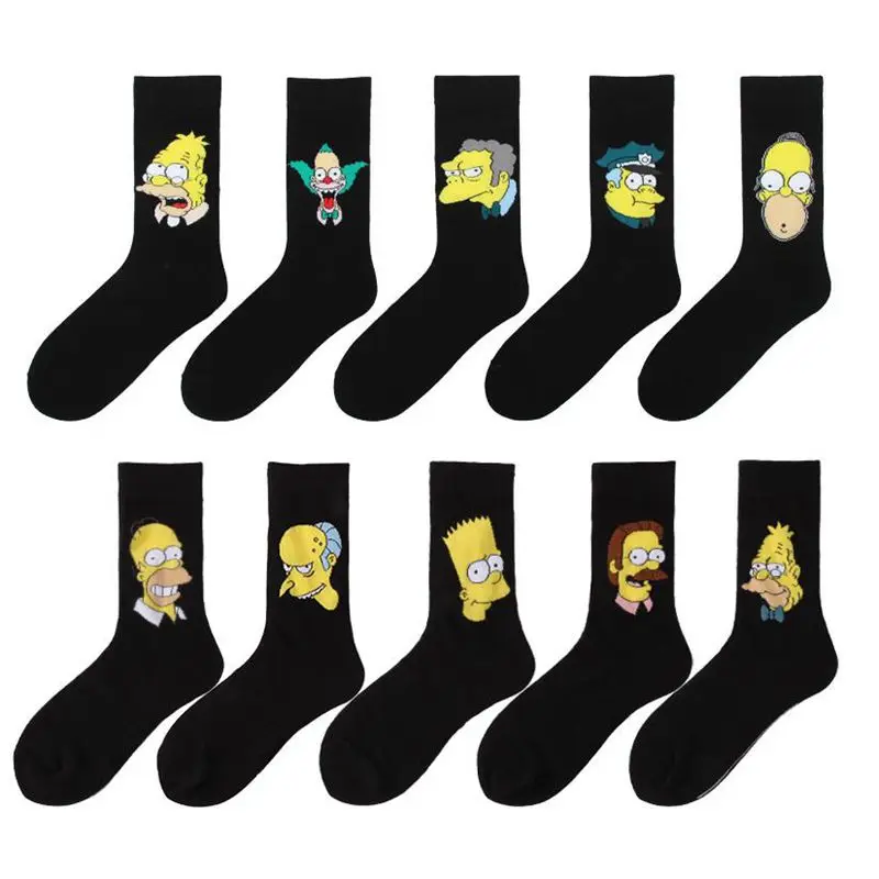 Новинка с героями мультфильма Симпсоны, длинные носки, модные мужские и женские черные носки унисекс, веселые хлопковые носки в стиле Харадзюку, хип-хоп, забавные индивидуальные носки