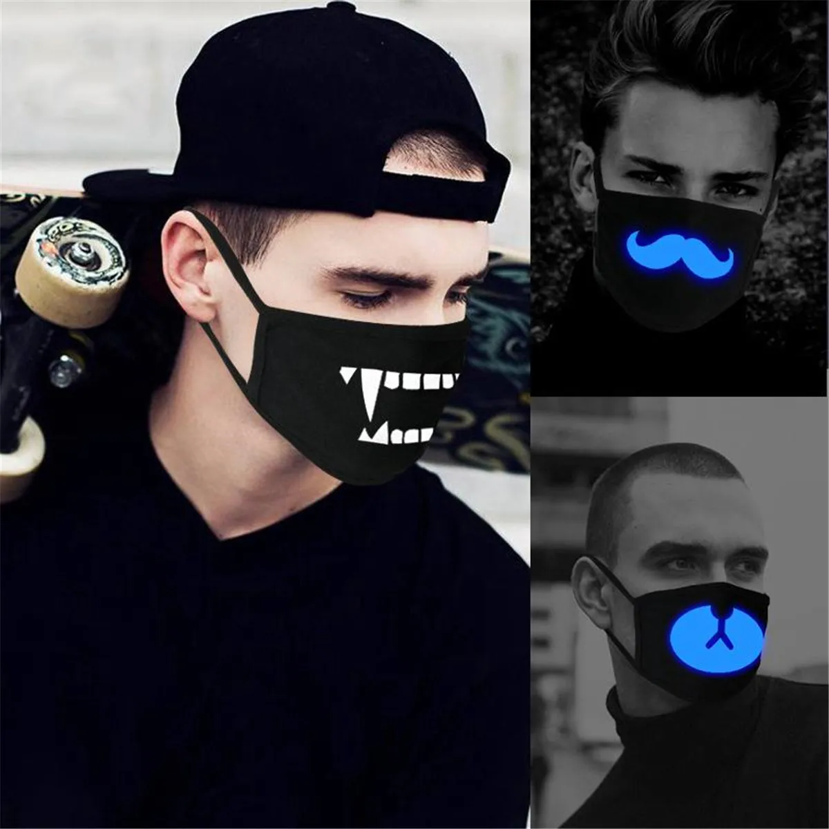 Материал: хлопок Размер: один размер (эластичный) Однотонный черный цвет Размер 170*120 мм /E-/H светящаяся модель /A-/D не светящаяся модель Рисунок: 8 стилей на выбор Количество: 1 100% Высокое качество и абсолютно новый Особенности: 1. Модная весенняя, летняя, зимняя теплая маска, изготовленная из высококачественных хлопковых смешанных материалов 2. Эта хлопковая маска является хорошим выбором для занятий спортом на открытом воздухе, таких как Велоспорт, кемпинг, туризм. 3. Эти маски идеально подходят для пыли, микробов, аллергии, дыма, загрязнения, золы, пыльцы, ремесел, садоводства, путешествий, анонимности 4. Защита от пыли/смога/Anti-PM2.5