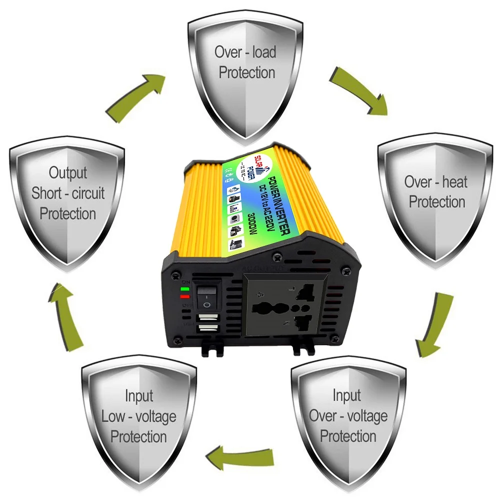12 В постоянного тока в переменный ток 220 В автомобильный инвертор мощность Инвертор 3000 Вт напряжение лодки преобразователь питания USB зарядное устройство конвертер с 2 USB