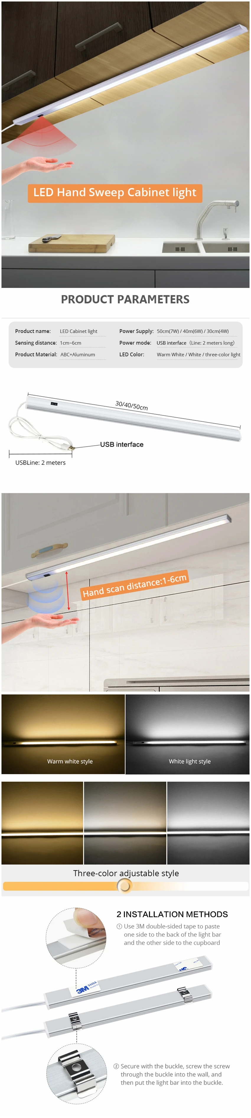30/40/50 см, совместимых с источником питания от USB 5 В, умный светодиодный Кухня светильник ручная развертка Сенсор Светодиодная лампа высокой Яркость Подсветка светильник для шкафы с выдвижными ящиками Гостиная Спальня