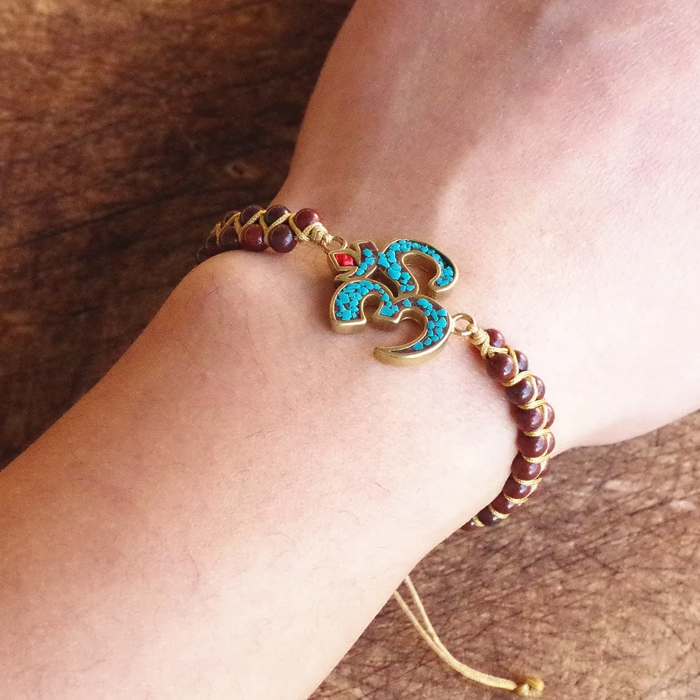 Ювелирные изделия ручной работы император камень трубки бусины чакра кожаный браслет обруча & браслет женщин мужчин Богемия Йога кулон браслет подарок