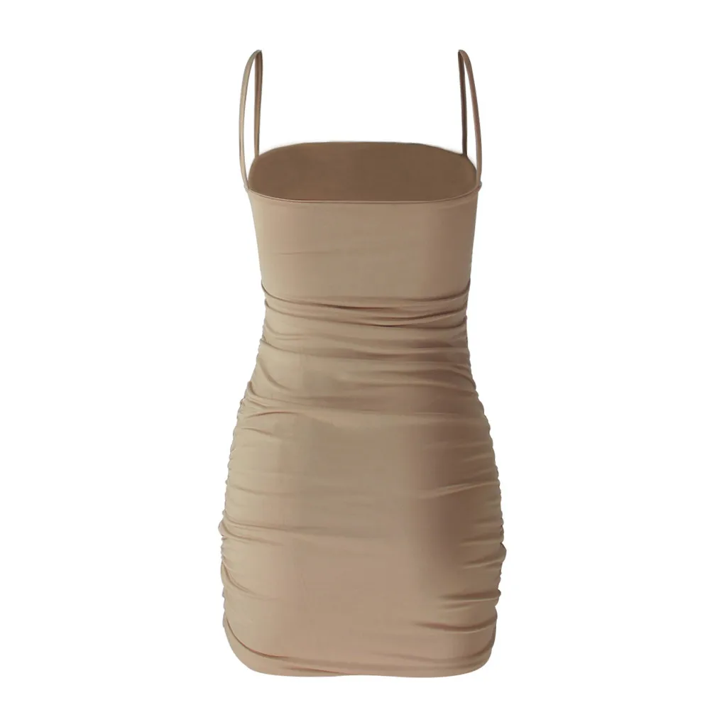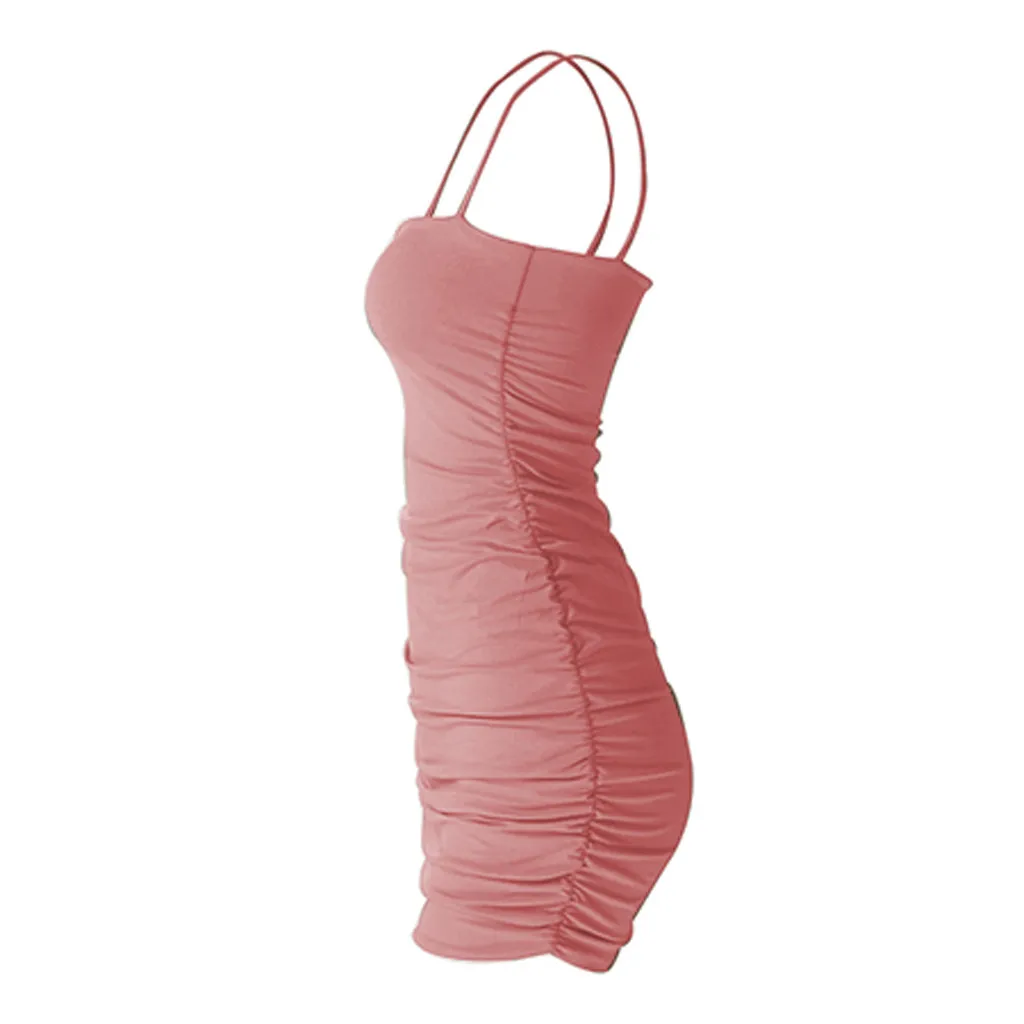 Women's Summer Fashion Hip Sexy Slim Sling Solid Sleeveless Dress