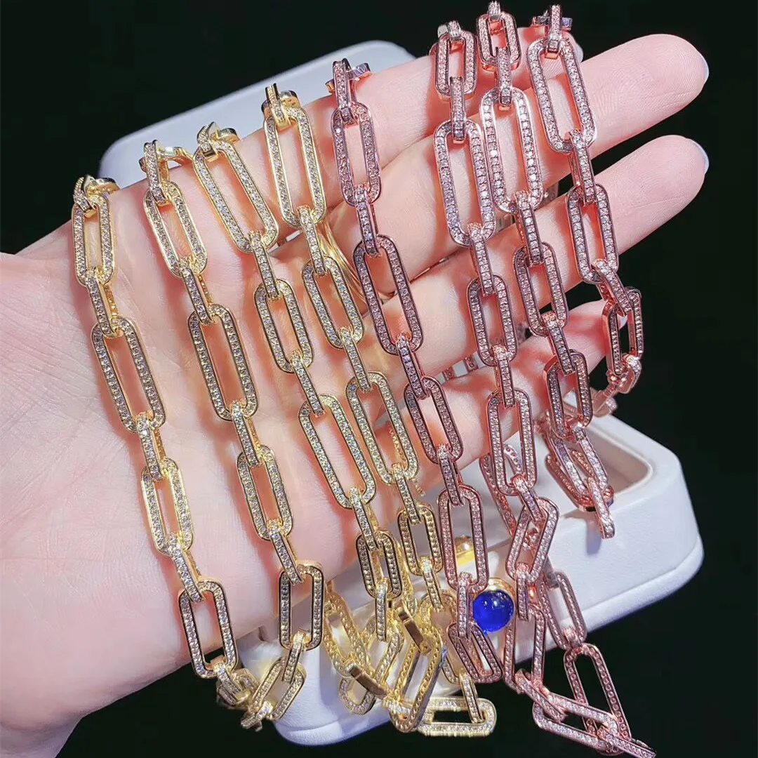 WT-BC133 эксклюзивная Драгоценная кубическая циркониевая массивная цепочка, Распродажа по метрам, модная женская латунная Золотая массивная цепочка с фианитами