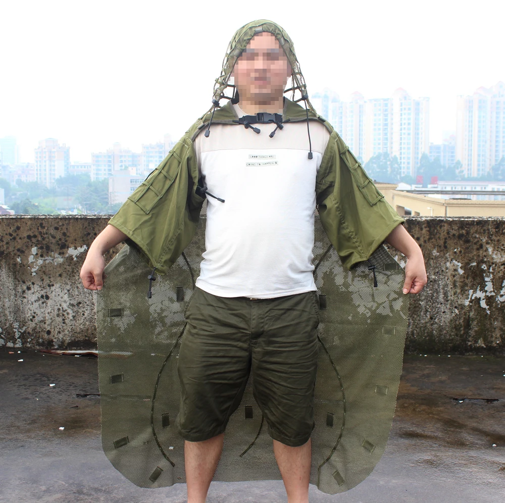 Для достижения лучшего камуфляжного эффекта мы предлагаем Маскировочный материал, такой как пряжа, листья, ветви и т. д. На плаще.