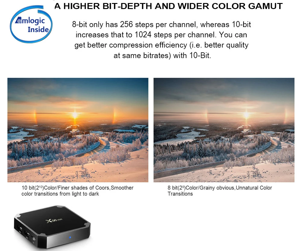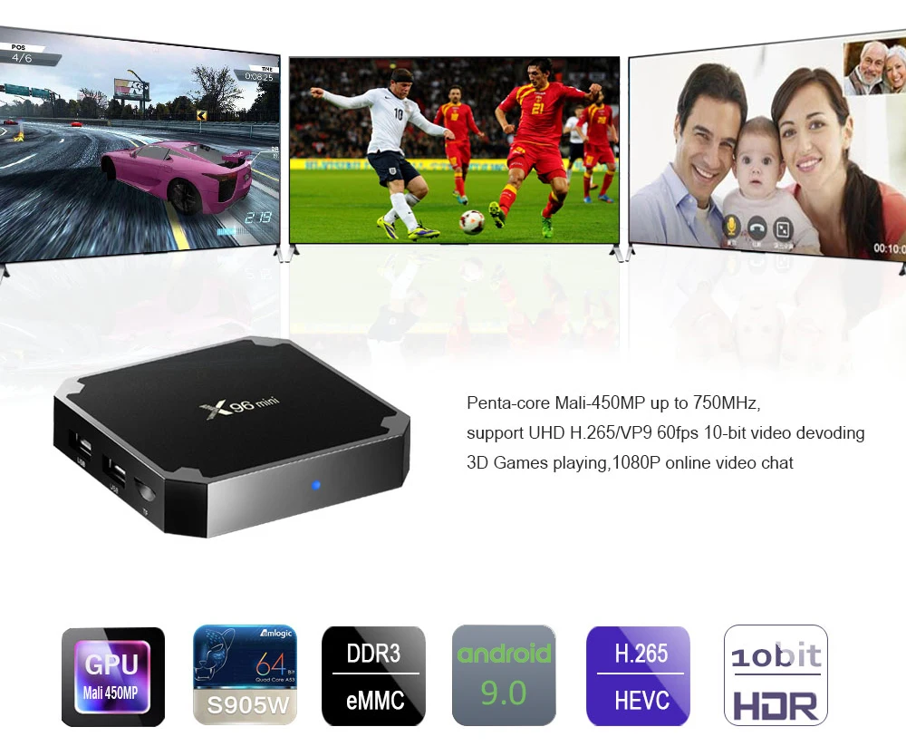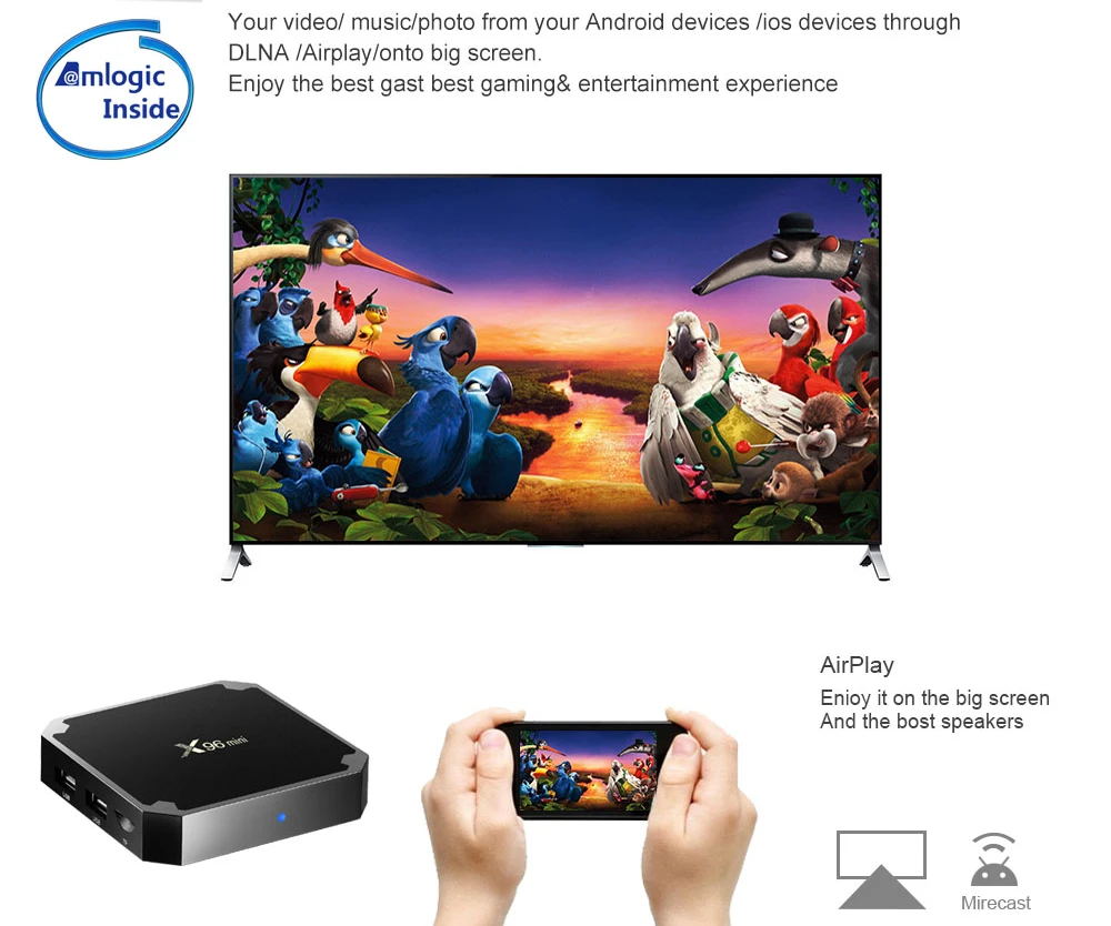 X96 mini поддерживает функцию DLNA/AirPlay, это означает, что ваше видео/музыка/фото может быть легко зеркальным с ваших устройств Android/iOS устройств на большой экран. X96 mini поддерживает цветовую гамму 10 бит, это означает, что у вас будет канал 1024 шагов. Очевидно, что вы можете получить лучшую эффективность сжатия, например, лучшее качество с одинаковыми битрейтами. X96 mini поддерживает UHD H.265/VP9 60fps 10bit video devoding.