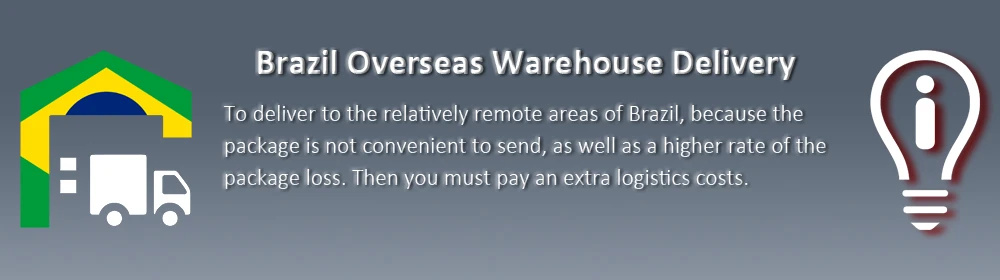Доставка в относительно отдаленные районы Бразилии, потому что посылка не удобна для отправки, а также более высокая скорость потери посылка. Затем вы должны оплатить дополнительные расходы на логистику. Пожалуйста, обратите внимание, что мы предлагаем вам бесплатную доставку, когда заказ содержит 3 шт. (Соблюдайте que ofereceremos o frete gratuitamente quando um pedido contiver 3 шт.).