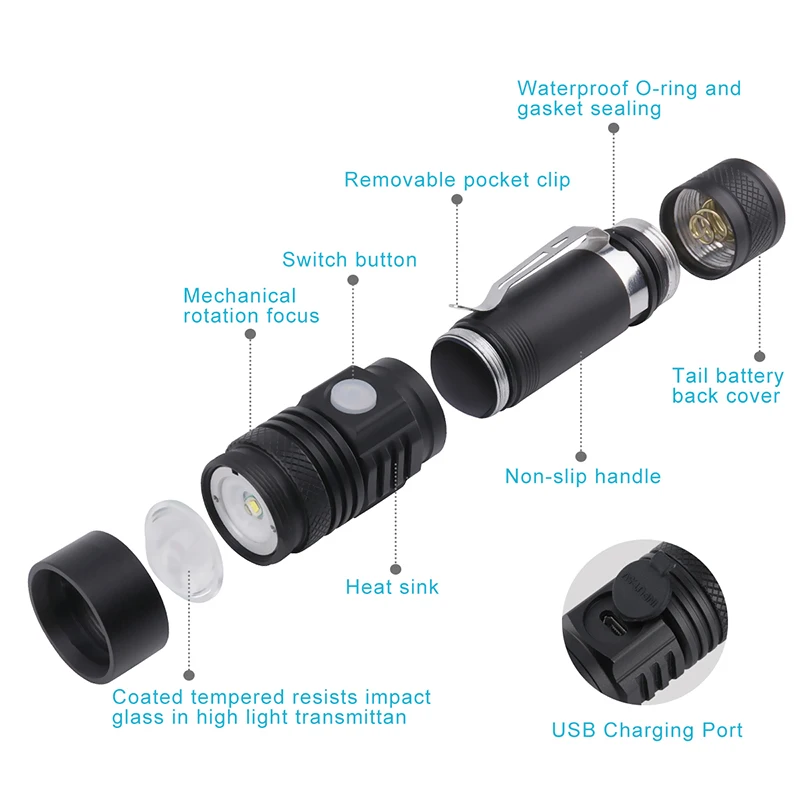 3. Заряжайте светодиодный ную вспышку в любом месте и в любое время светильник окружающую среду и держать вас в движении.