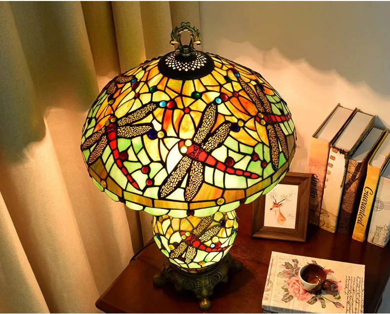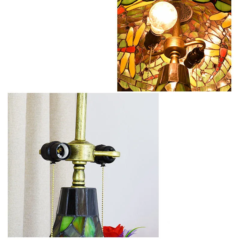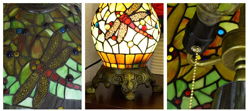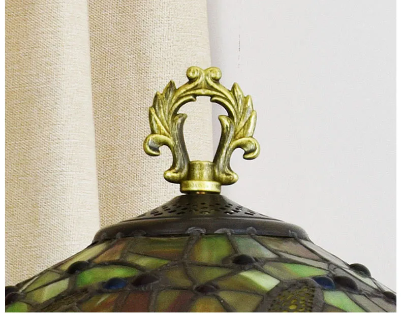 Красочные Стеклянные детали вручную наклеены на поверхность абажура.