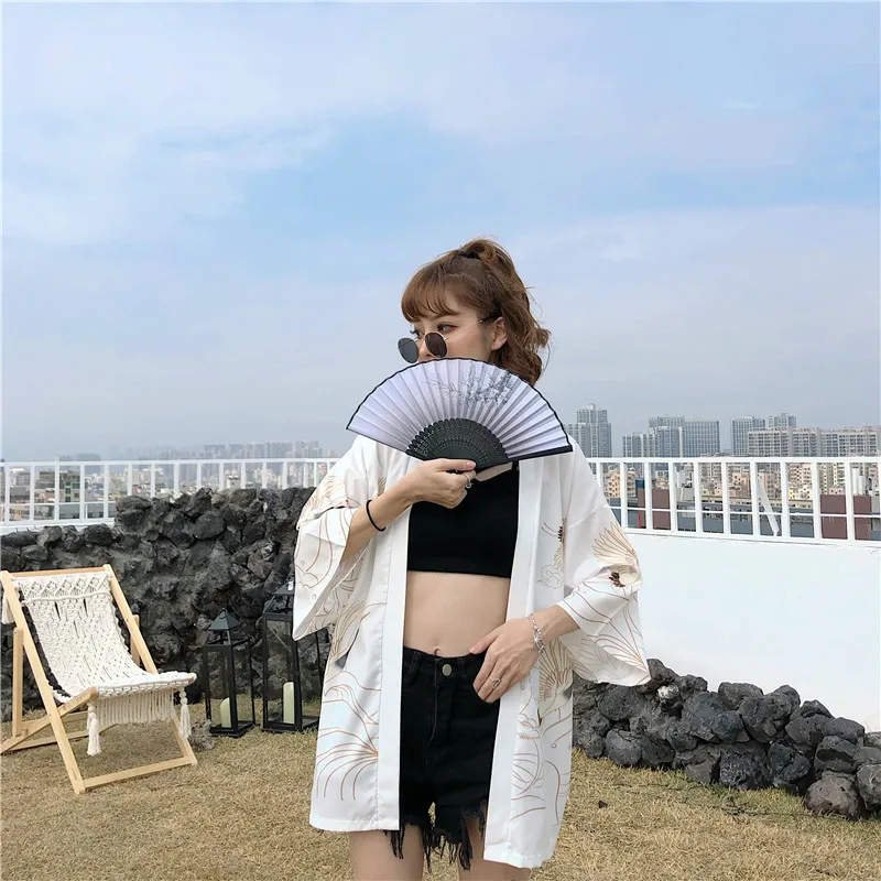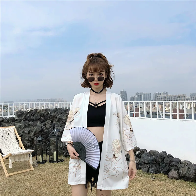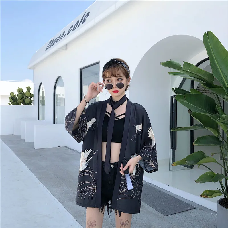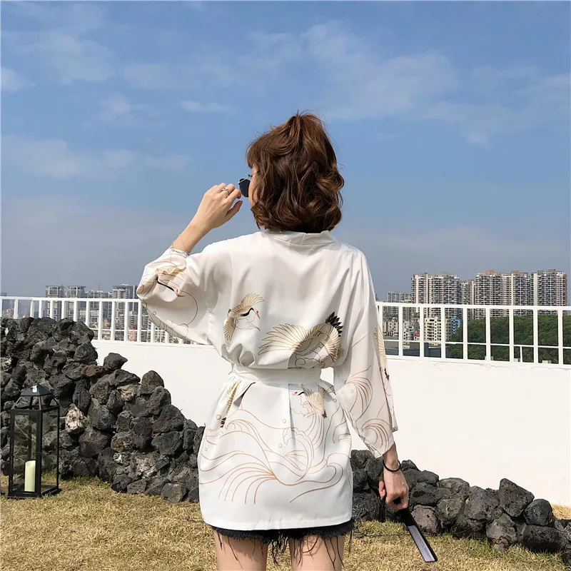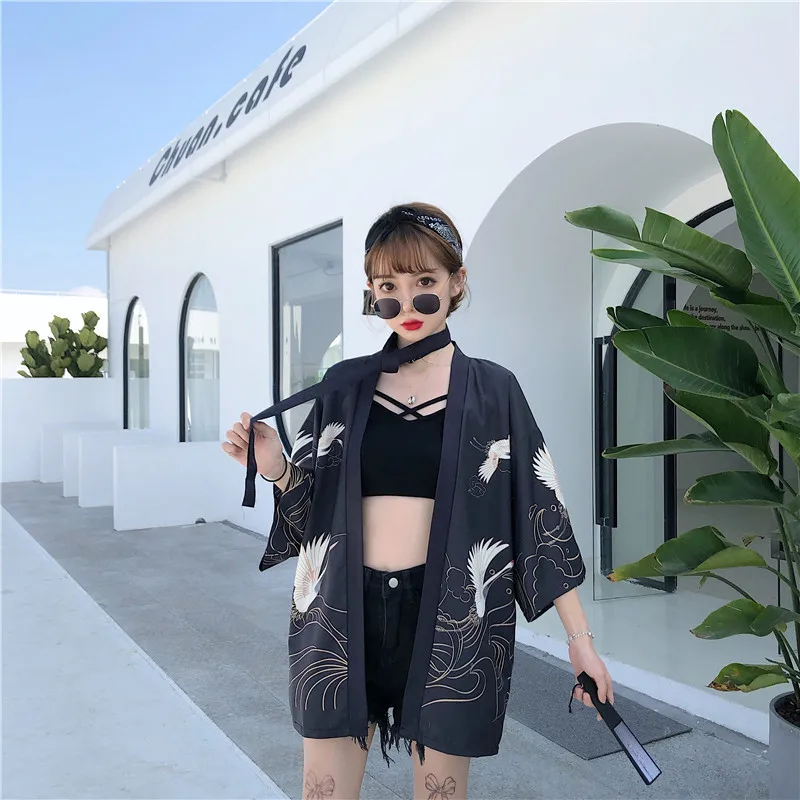 Летняя Новинка, кимоно в японском стиле Mujer Crane, одежда для защиты от солнца, свободная рубашка, кимоно, куртка, кардиган Yukata Samurai Haori