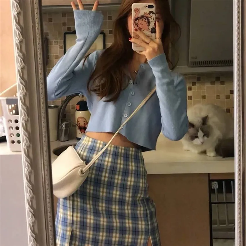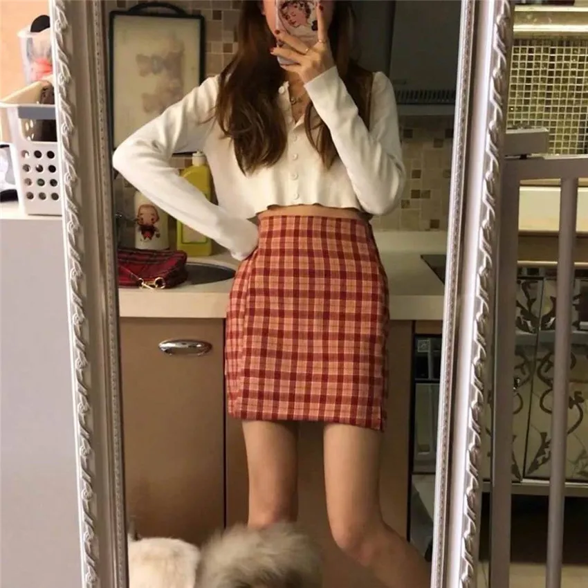 Винтажные фиолетовые клетчатые мини-юбки для женщин 2020 летние корейские офисные женские повседневные Короткие плиссированные юбки Mujer