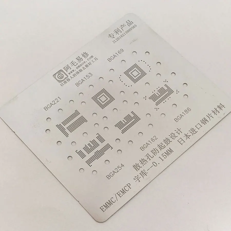 Amaoe памяти на носителе EMMC EMCP BGA реболлинг трафарет для UFS шрифт BGA153 162 169 186 221 254 Универсальный BGA трафарет 0,15 мм