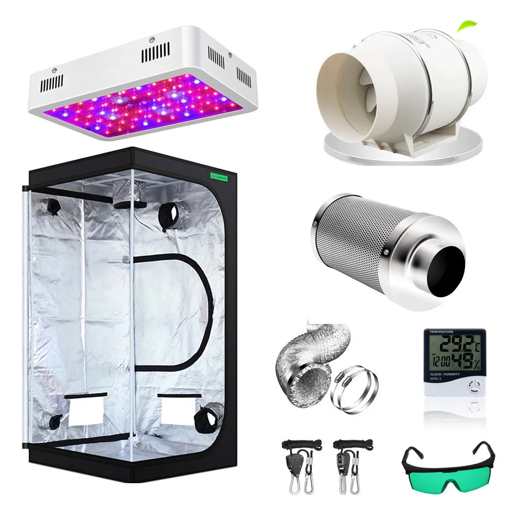 Комплект | Палатка для выращивания | Комплект вентиляционной системы | Светодиодный светильник для выращивания | Светодиодные очки для выращивания | Регулируемый Канат | 3 в 1 термометр |