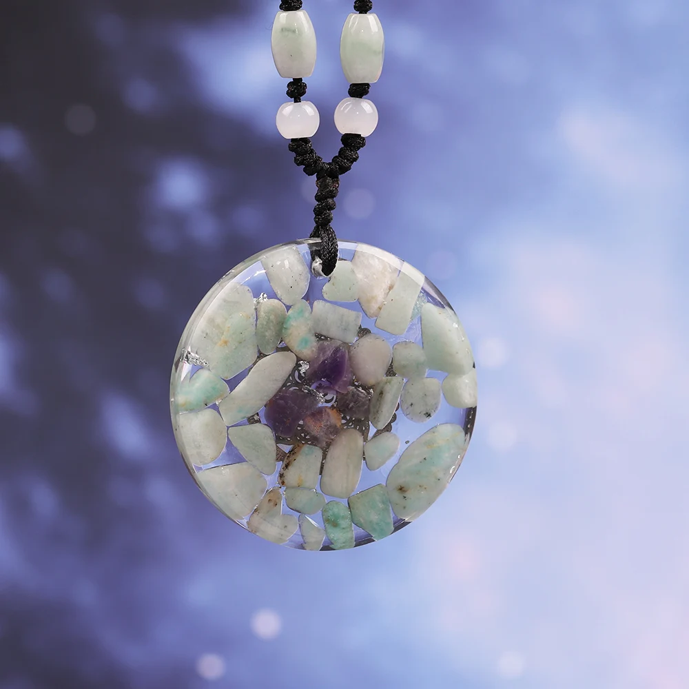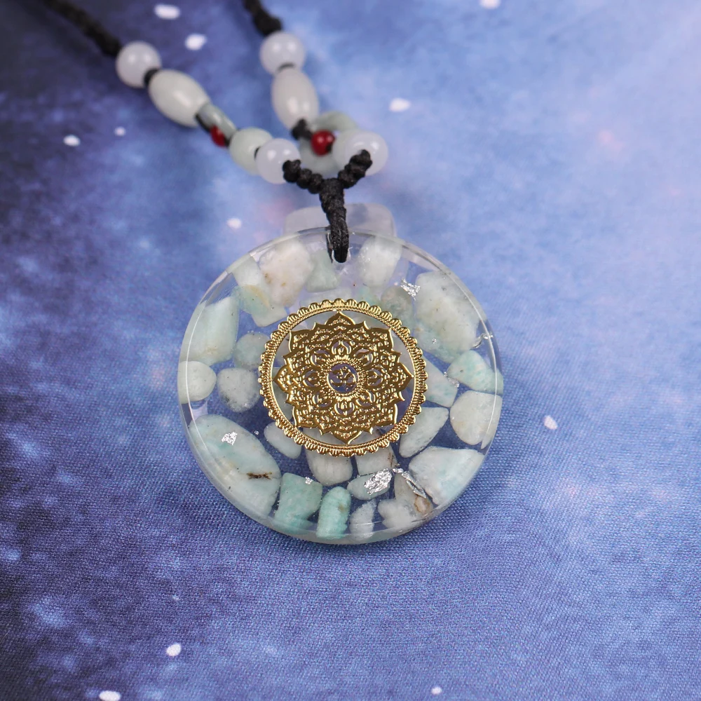 Ожерелье из амазонита, энергия оргонита, подвеска из смолы, Ювелирная подвеска ручной работы, собирающее богатство, приносит удачу, Женское Ожерелье