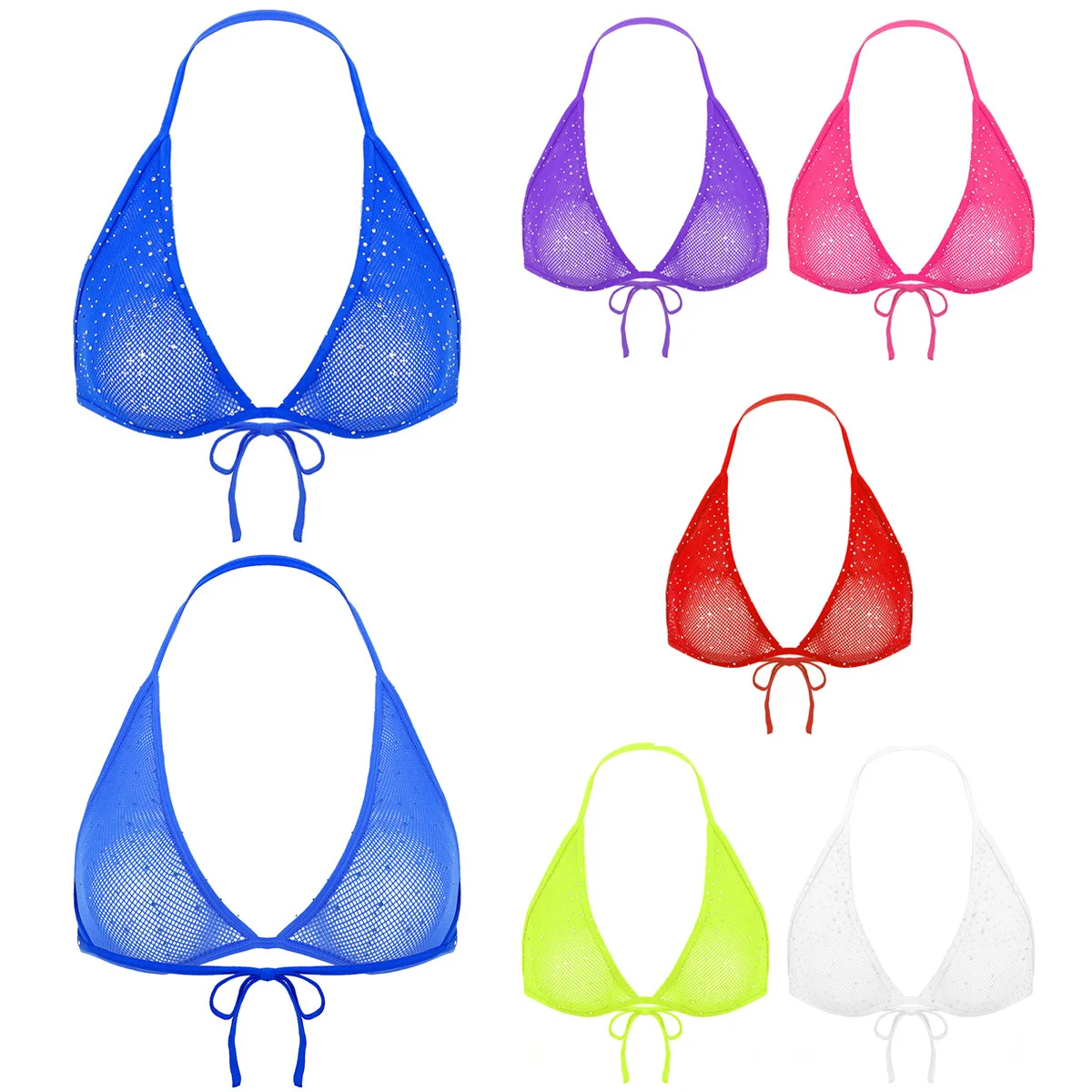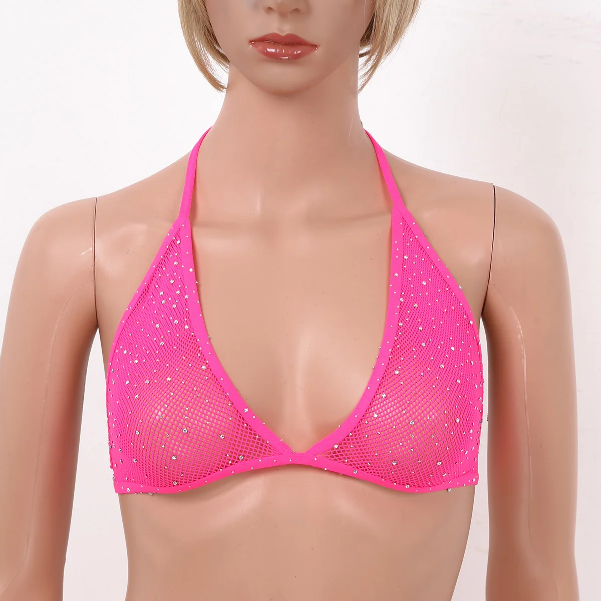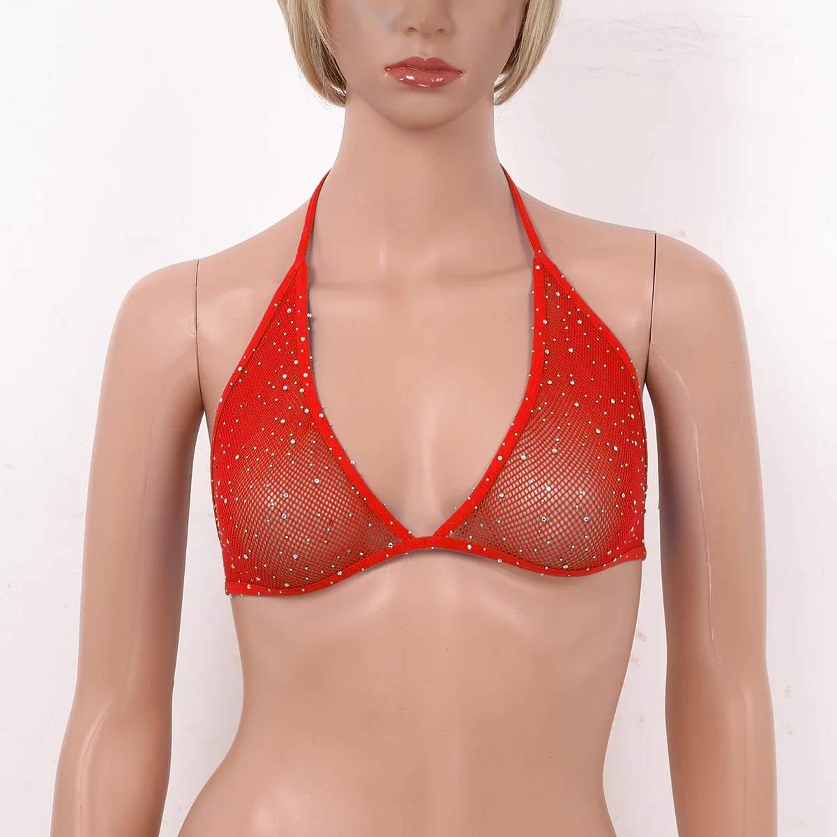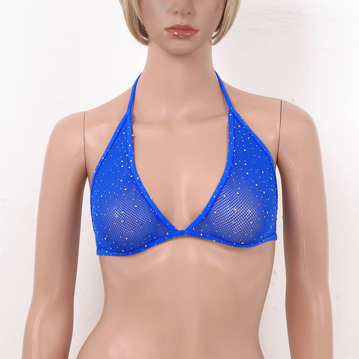Женские блестящие стразы с воротником-халтером и открытой спиной, ажурные треугольные бюстгальтеры, топы прозрачный бюстгальтер без косточек