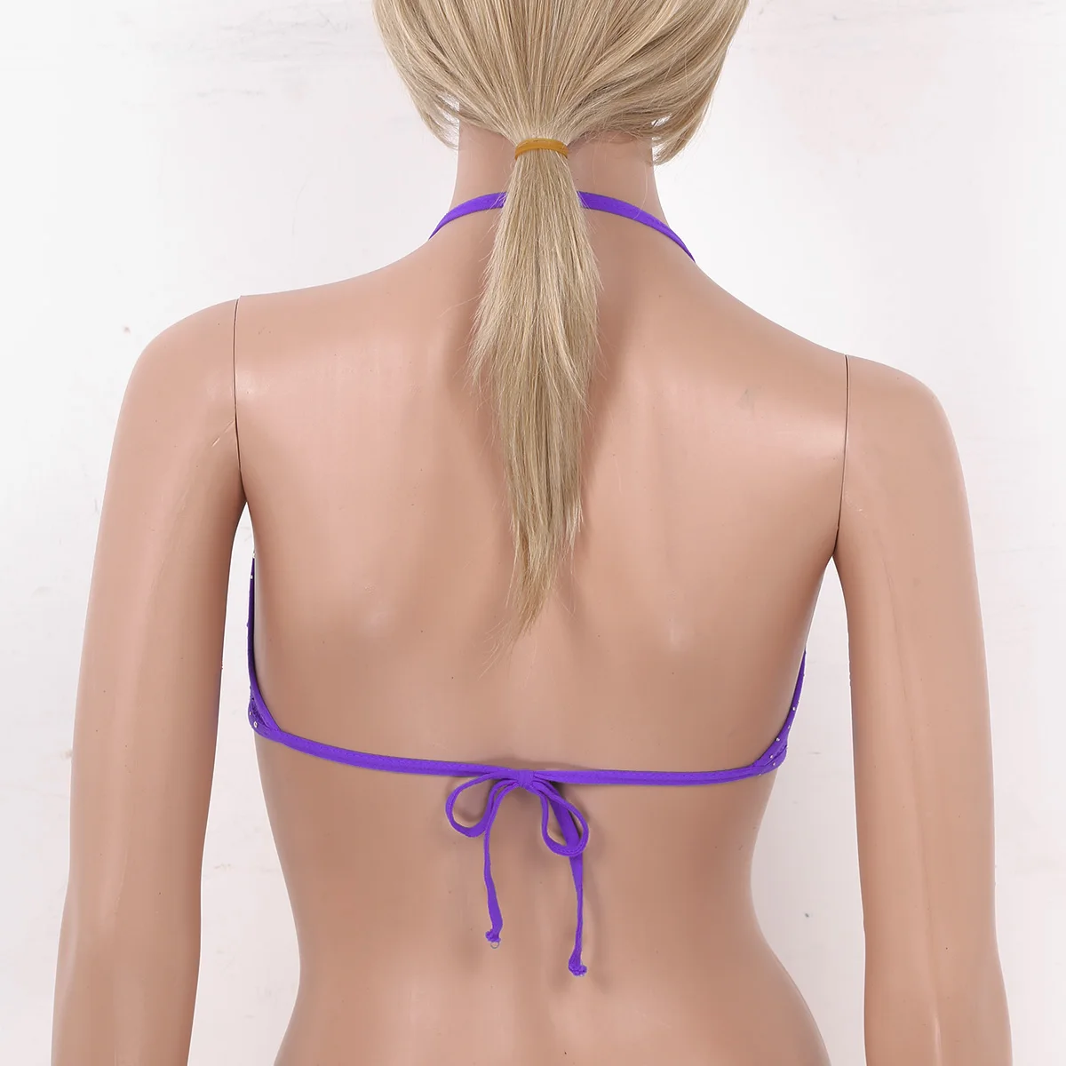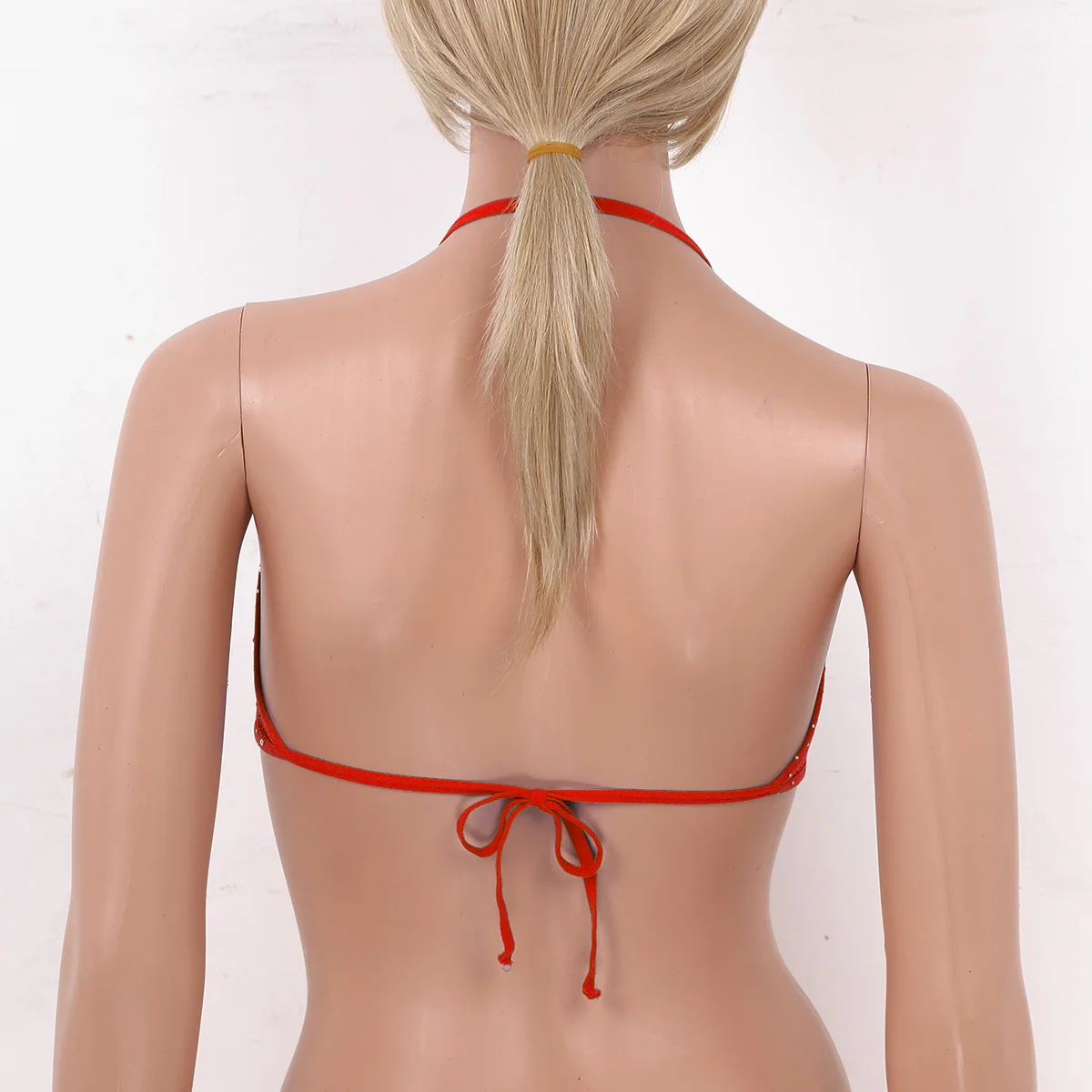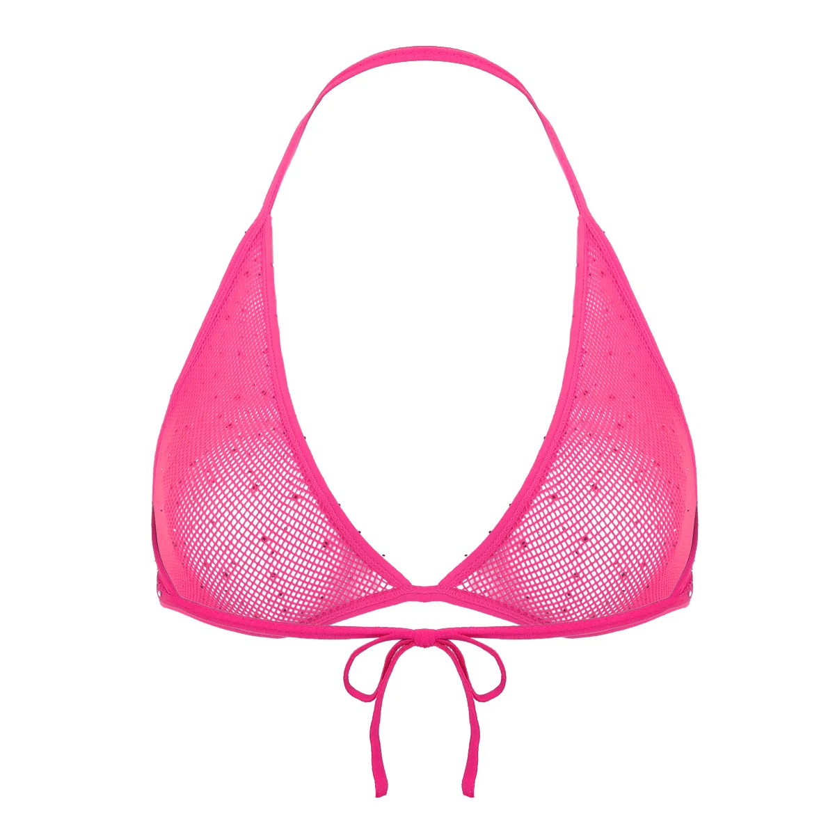 Воротник-халтер с завязкой на тонких бретелях сзади, ажурные треугольные чашки с дизайном, с блестящими Стразы по всему.