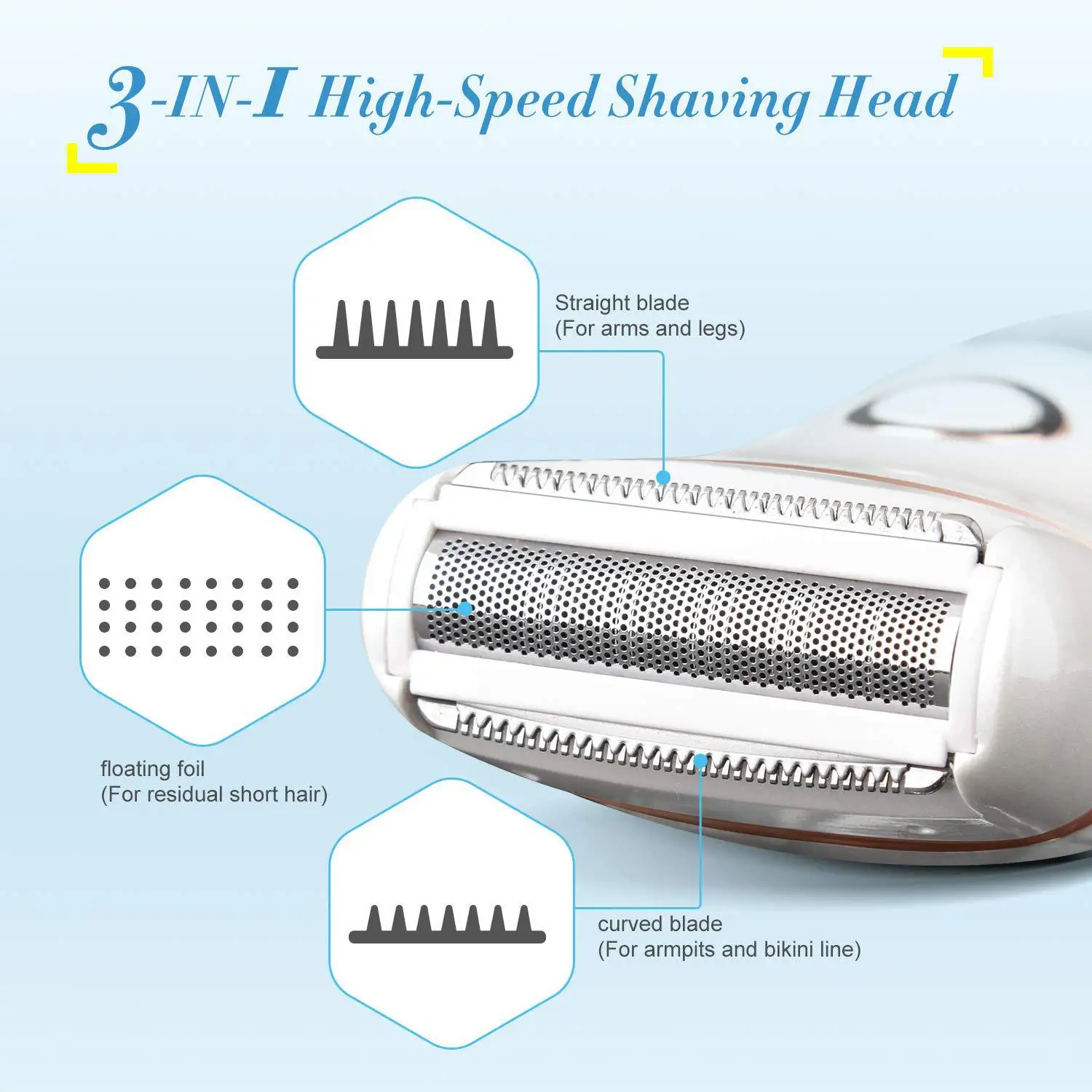 1. ЖК-дисплей и блокировка для путешествий: ЖК-дисплей может интуитивно отображать аккумулятор и рабочий статус; Блокировка одной кнопкой (5 секунд заблокирована и 3 секунды разблокирована), вы можете заблокировать эпилятор, чтобы избежать случайного прикосновения к источнику питания или неожиданного запуска в поездке. 2. Безболезненные и 3 в 1 лезвия: плавающая фольга и Гипоаллергенное лезвие из нержавеющей стали помогают достичь близкого, но безопасного и удобного бритья без боли или раздражения на любой чувствительной коже, подарите вам отличный опыт бритья. Безопасное влажное и сухое бритье: Водонепроницаемая конструкция делает его безопасным для использования даже в ванной или душе. 3. Несколько функций: можно использовать на лице, руках, ногах, теле, подмышках и бикини и т. Д. В течение нескольких минут без каких-либо остатков. Небольшой эргономичный размер для удобства использования дома или в путешествиях. 4. Быстрая зарядка через USB: 2 часа Полная зарядка позволяет работать 75 минут, экономя время. Глобальное напряжение: Универсальное напряжение 110V-220Vglobal будет удобно для вашей зарядки по всему миру, подходит для путешествий по морю. 5. Usb-порт и беспроводной: электрический эпилятор со встроенным перезаряжаемым usb-портом. Использование зарядки обеспечивает удобство и безопасность.