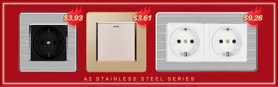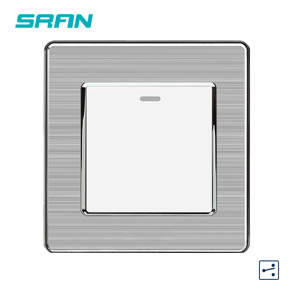 1 позиционный двухпозиционный кулисный переключатель (86 мм * 86 мм) 250V 16A со светящейся ленты Панель из нержавеющей стали с посеребренными краями Белый/черный/золотой