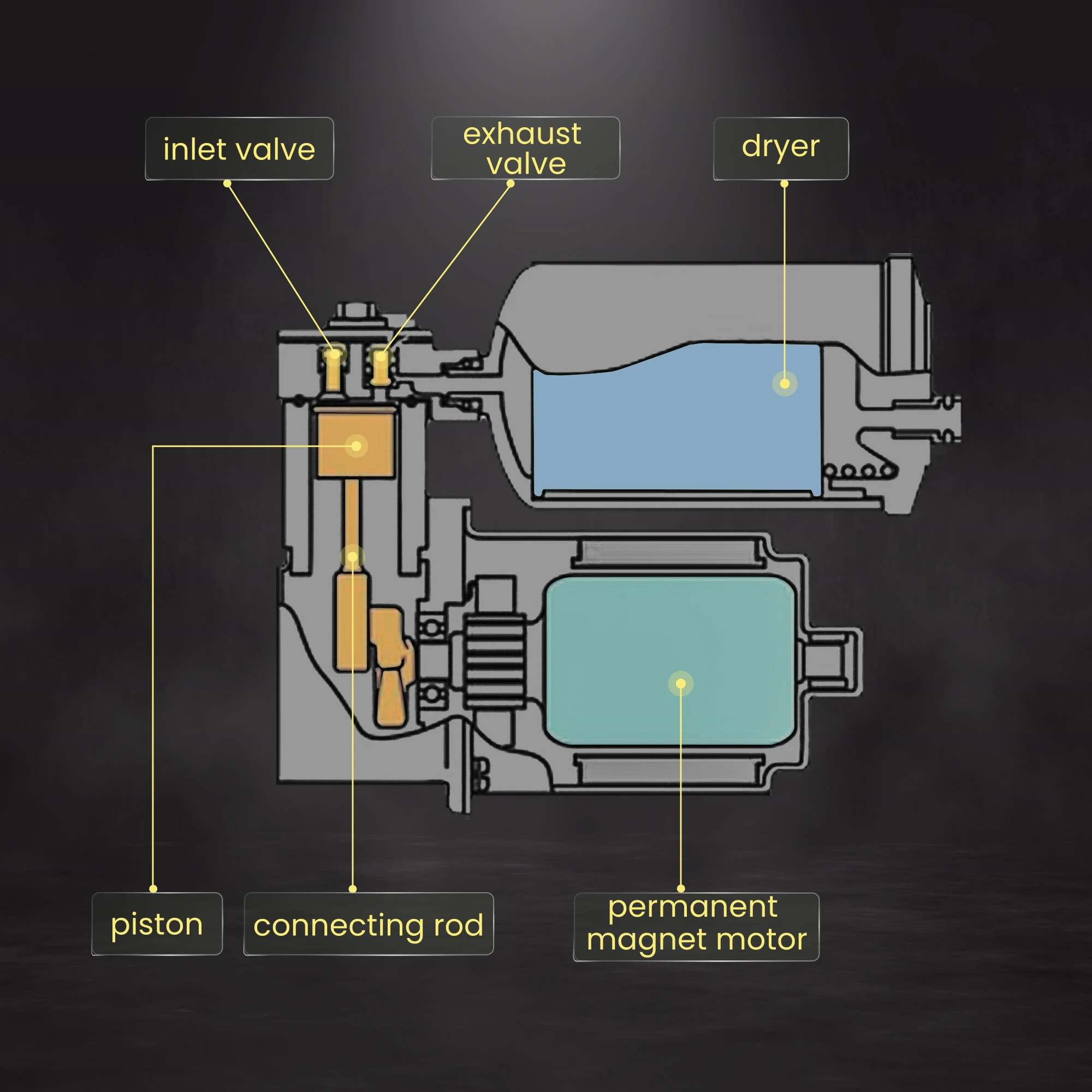 Количество: 1 компрессор в сборе (кронштейны, сушилки, коробки воздушного фильтра, герметичное звукоизоляционное экранирование, жгут проводов и разъемы)
