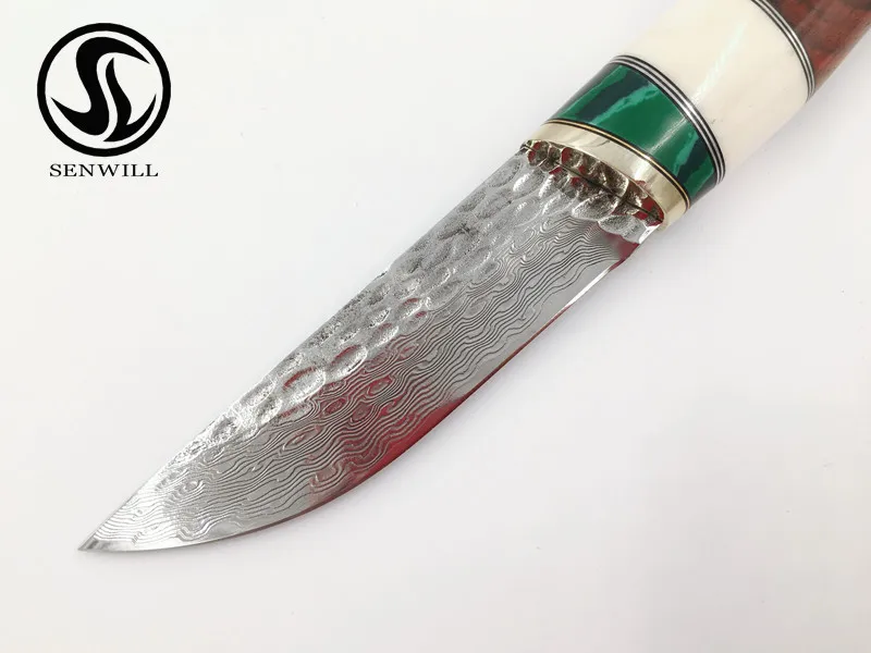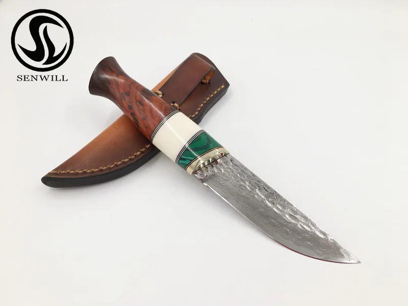 Тактические ножи Senwill с фиксированным лезвием, VG10, дамасская сталь, уличные ножи, острый охотничий нож с кожаной оболочкой