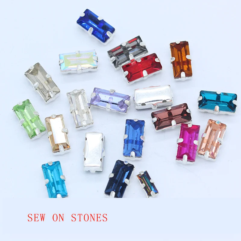 24 цвета 4-27 мм Пришивные плоские прямоугольные Стразы со стразами с серебряными когтями для ручного шитья украшения для одеждыUS $0,99 /