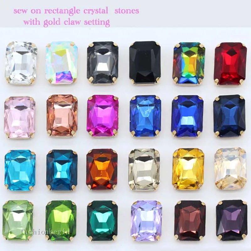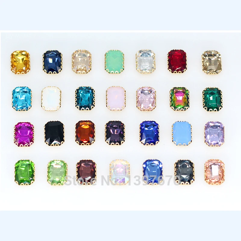 4-27 мм 24 цвета, прямоугольные Стразы для шитья, кристаллы, ремесло с золотым когтем, плоская задняя часть для одежды, аппликация, аксессуары для самостоятельной сборкиUS $0,99 /