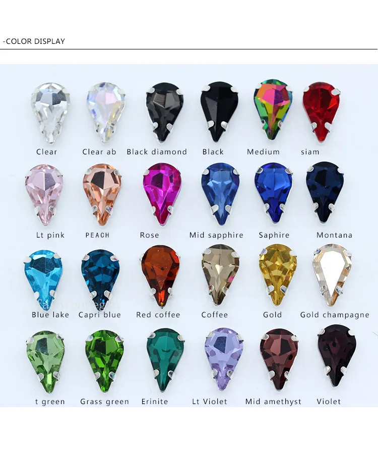 24 цвета 4-40 мм Пришивные капли воды стразы кристаллы с серебряной кнопкой коготь каплевидные Драгоценности 4-отверстие для шитья одежды ремеслаUS $0,99 /