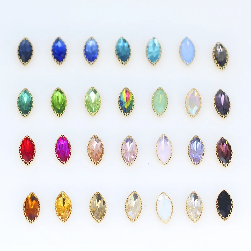 4-32 мм 24 цвета конский глаз Navette кристалл с золотым когтем Маркиза Форма пришить стразы для ювелирных изделий для свадебного платья, сумок отделкаUS $0,99 /