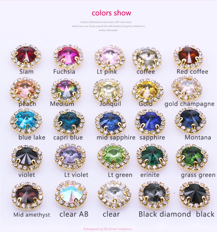 Различные цвета размер пришить Наветт стеклянные кристаллы пришить на кнопку с Стразы цепь Золотой Коготь Diy свадебное платье украшениеUS $4,79 /