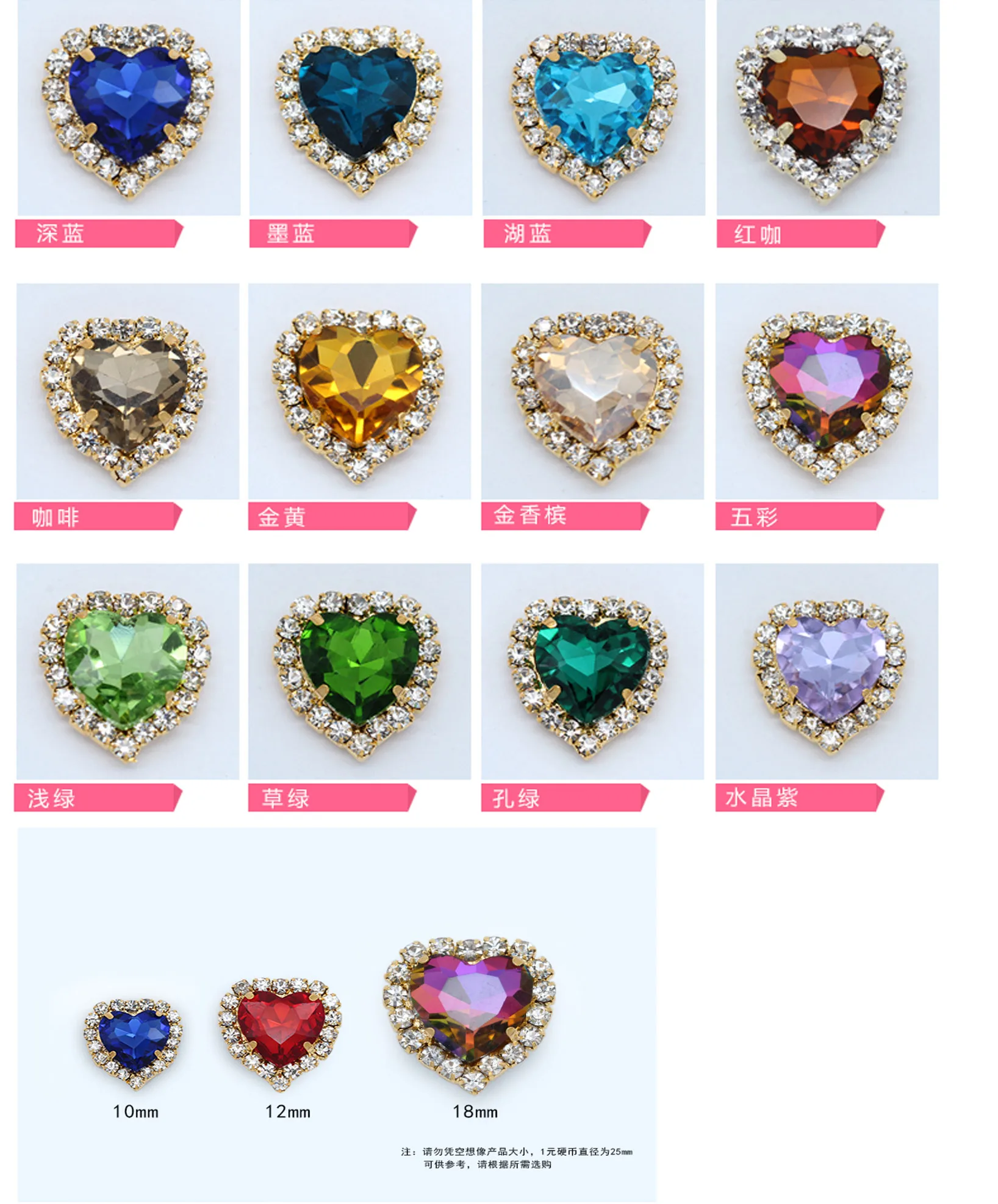 8/10/12/18 мм Золотое сердце пришить с Красочные Стразы камень коготь с кристальными пуговицами Базовая Камея Установка DIY ювелирных изделий одежда подвескиUS $4,29 /