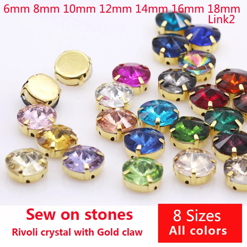 Все Цвета 6-25 мм круглые Rivoli пришить стразы с украшением в виде кристаллов с золотым коготь Установка для одежды свадебное платье ювелирных украшений Hand-Made отделкаUS $0,99 /
