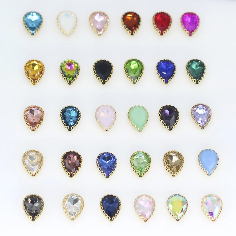 5x8 мм 6x10 мм 8x13 мм 24 цвета пришить плоские капли воды каплевидные хрустальные стразы с золотым когтем свадебные туфли сумки DiyUS $0,99 /