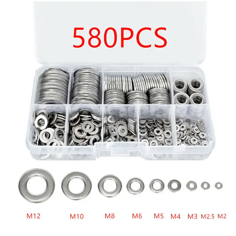 * 580X нержавеющая сталь плоская шайба комплект для M2 M2.5 M3 M4 M5 M6 M8 M10 M12 болт