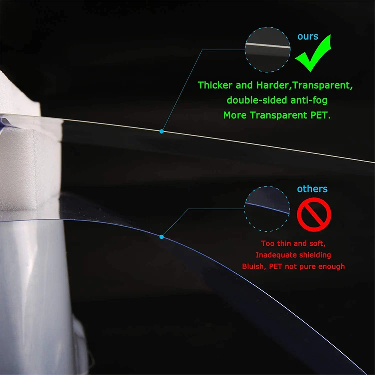 Название продукта: лицо shiled Особенности: * Двойной противотуманный питомец. Толщина: 0,18 мм * Размеры: 32*22 см; 29*22 см * С толстой губкой, сделать очень Удобные. * OEM сервис. Применение: • гипоаллергенный пенопласт может поглощать пот и обеспечивать Достаточно места для очков или защитных очков. • Конструкция из вентилируемого пенопласта обеспечивает повышенный поток воздуха и комфорт. • Sonically сварная лента придает лицевой щит дополнительную прочность И надежность. • Доступны как в эластичной, так и в регулируемой липучке. • Легкий и удобный в носке, быстро и легко надевать. • Отличная защита от потенциального загрязнения Патогены крови, жидкости для тела или вредные химические брызги. • Все ремни могут быть sonically сварены или закреплены на щитке С петелькой для безопасности.