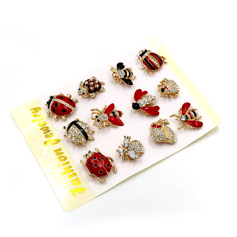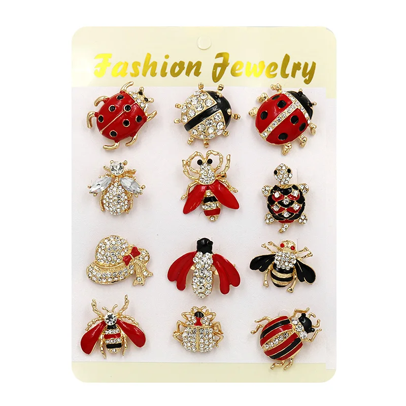 MIEG 12 шт./лот, смешанные стили, броши в виде животных, Модный кристалл и эмаль, божья коровка, набор брошей для насекомых Название: брошь в виде насекомого Упаковка: 12 шт./лот
