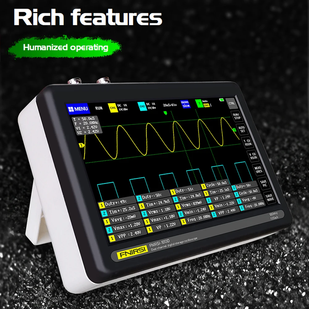 ADS1013D-это полнофункциональный, очень практичный, экономичный двухканальный плоский осциллограф для обслуживания и R & D промышленности.