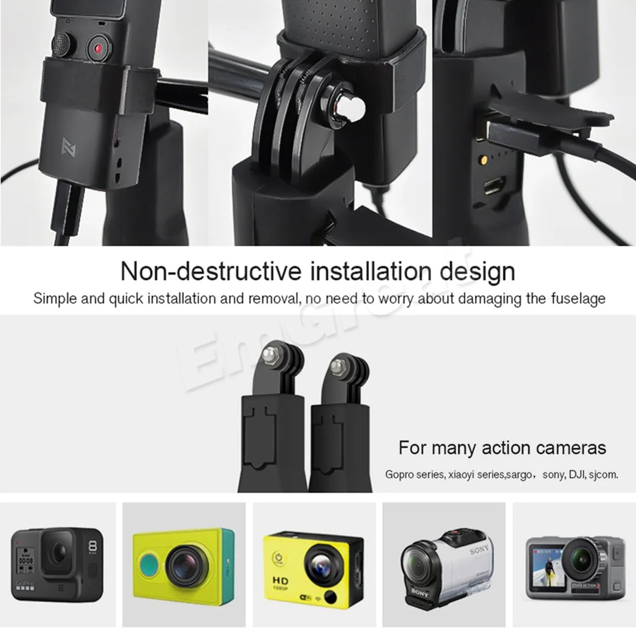 【 1 】 как на картинке, выньте детали расширения, затем закрепите его на ладони fimi 【 2 】 затяните с винтом M5 【 3 】после подключения кабеля передачи данных включите выключатель питания.