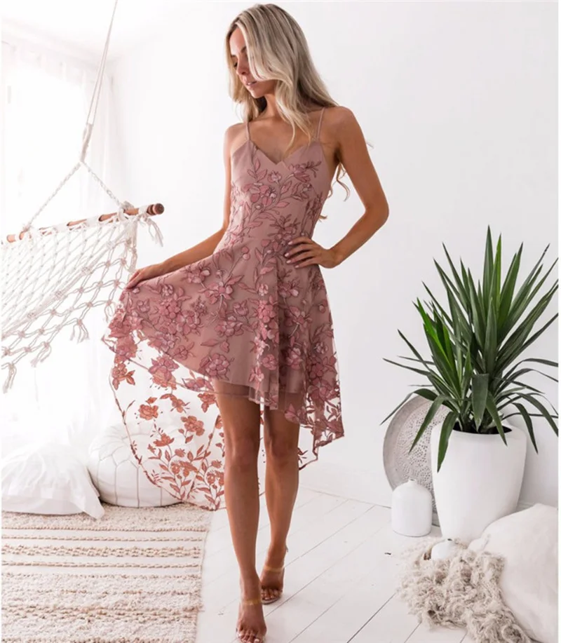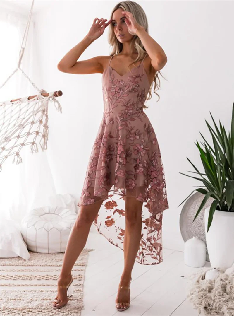 Женское платье на бретелях спагетти однотонное облегающее трапеция с V образным