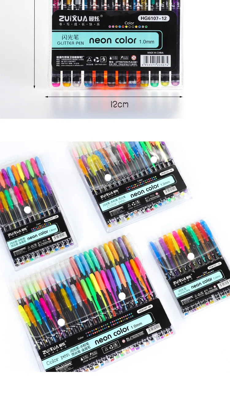 48/36/24/12 Цветов набор гелевых ручек гелевая ручка с блестками ручка-маркер для журналов для рисования Рисование Искусство школьные маркеры канцелярские принадлежности