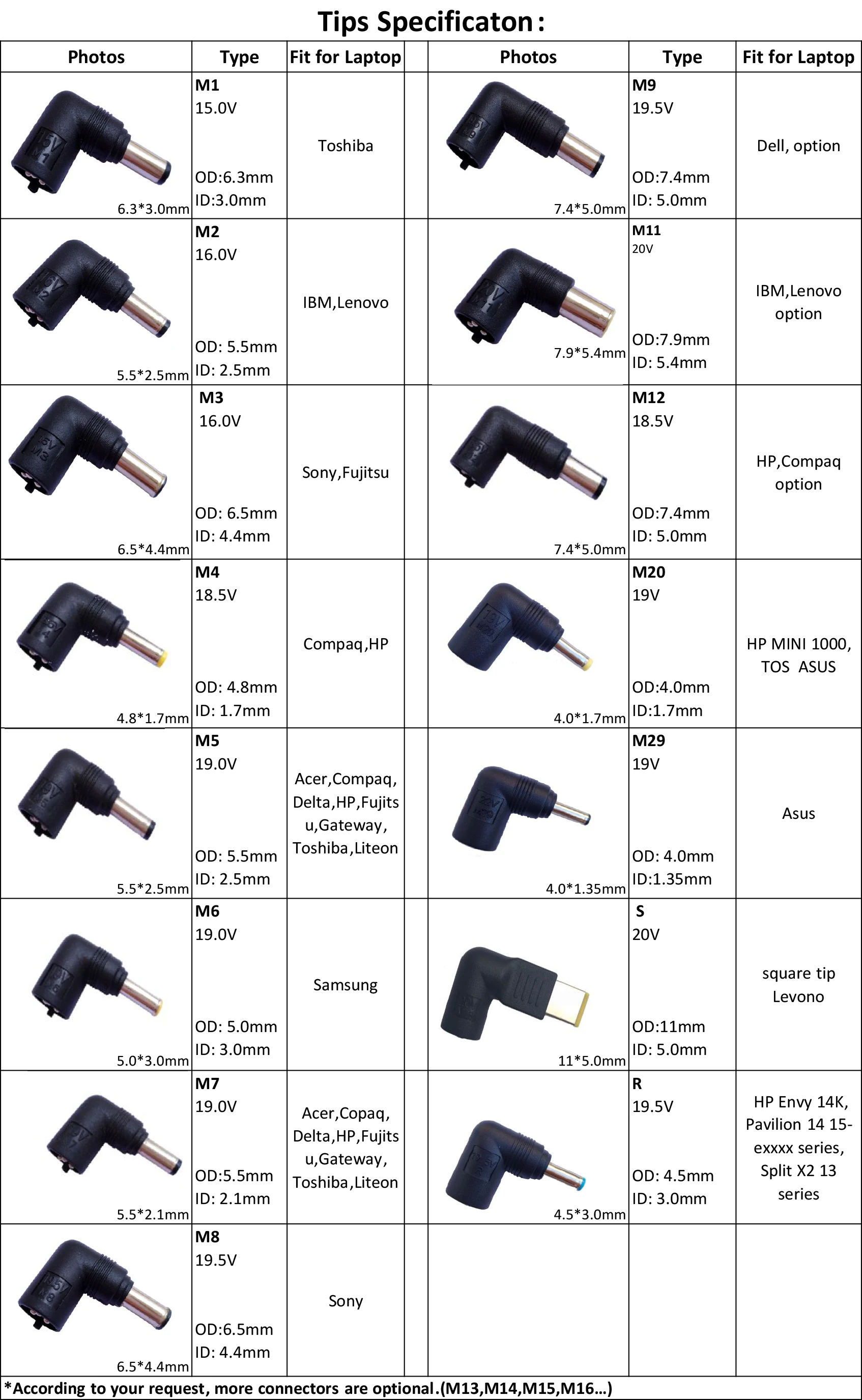 Первое Универсальное зарядное устройство USB type c обеспечивает питание ноутбука через порт USB C с помощью взаимозаменяемых подсказок. Он может вместо старого стиля универсального адаптера для ноутбука. Ультра портативный и удобный для путешествий. Посылка включает 6 разъемов (M5,M12,M13,M29,R,S) Если вам нужны M9,M10,M11... пожалуйста, свяжитесь со службой поддержки клиентов, чтобы купить его по другой ссылке.