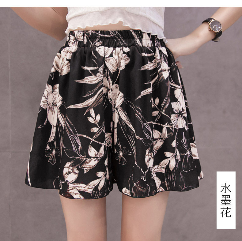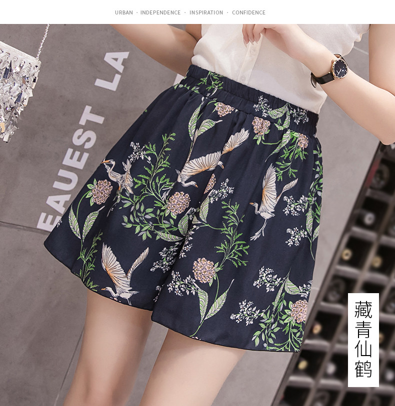 2020 модные летние женские удобные шифоновые Повседневные брюки с красивым принтом размера плюс женские свободные короткие брюки с высокой талией
