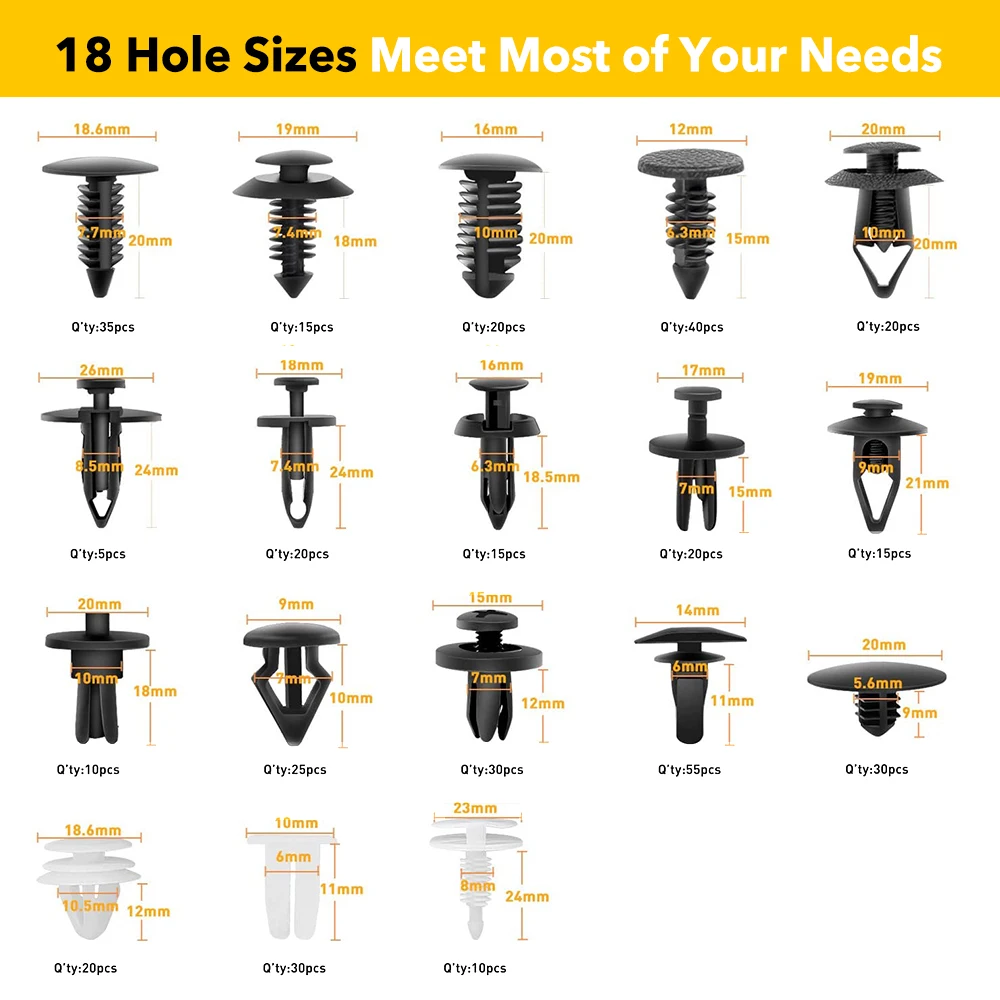 Технические характеристики: Материал: Пластик Цвет: черный Детальный размер: как показано на картинке Количество товара: 415 шт. Вес посылка: прибл. 764 г Применимость: для большинства автомобилей марки Ford Применение: широко используется для автомобильного бампера, боковой юбки, Радиаторного щита, фиксаторов, решеток, крышки двигателя, отделки дверей, различных отделочных панелей и т. Д. Посылка список: 415 шт. Автомобильные пластиковые Заклепки Крепеж Примечания: 1. Пожалуйста, убедитесь, что старые зажимы, которые вам нужно заменить, идентичны тем, которые на картинке, прежде чем вы их купите. 2. Измерения выполнены вручную, допускается погрешность в 1-5 мм, спасибо. 3. Поскольку количество определяется точным измерением взвешивания, пожалуйста, допускайте погрешность в 2% от количества, пожалуйста, поймите, спасибо!