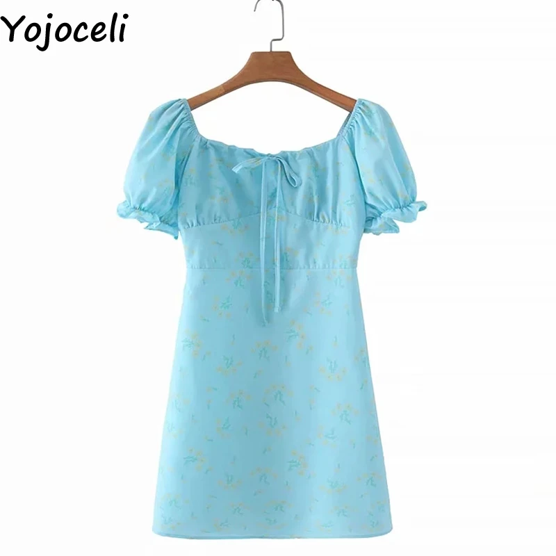 Женское Плиссированное короткое платье Yojoceli, повседневное пляжное мини-платье с квадратным вырезом, летнее платье