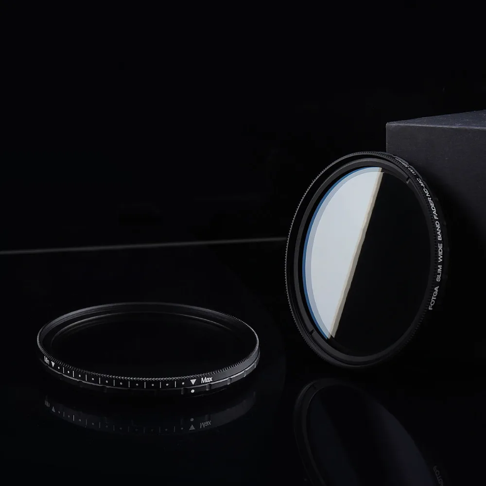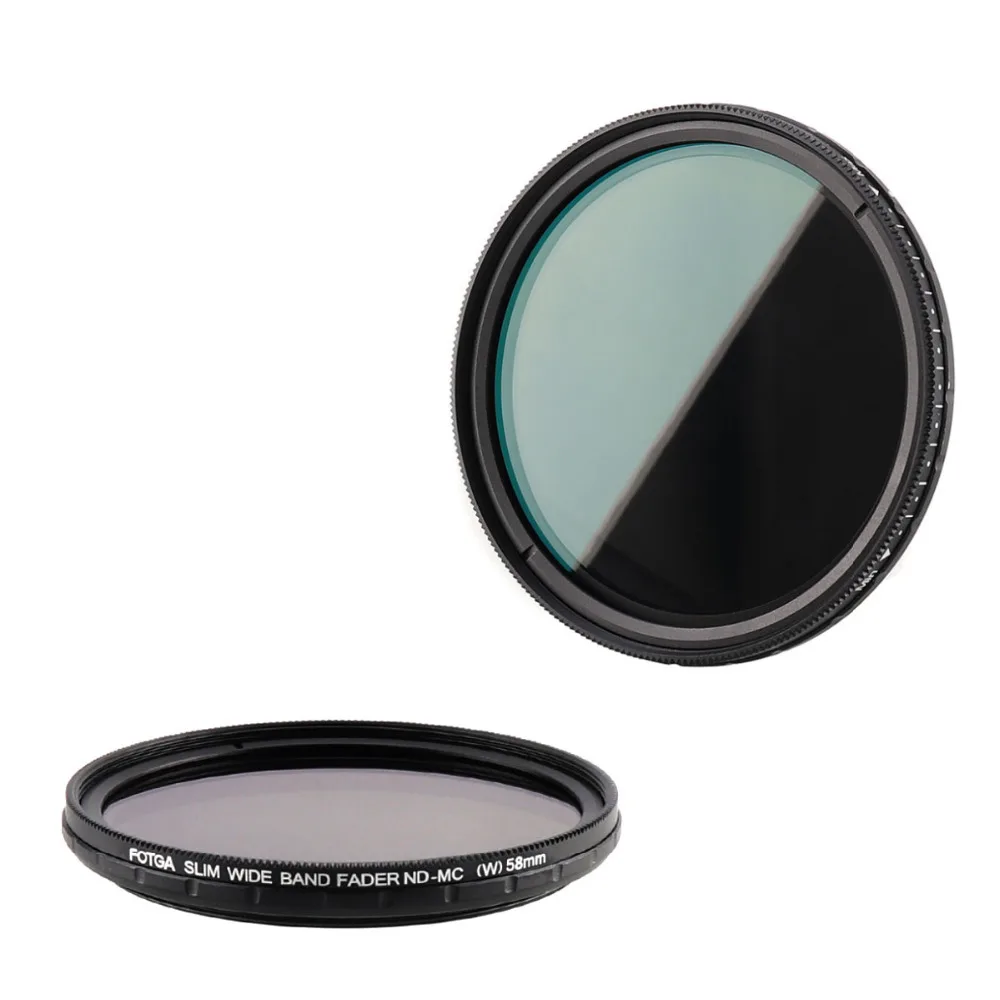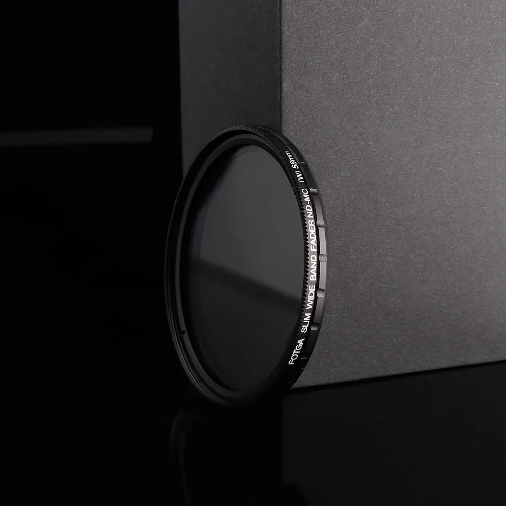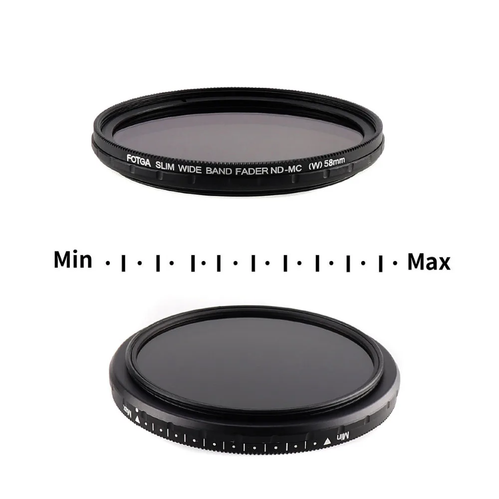 FOTGA Neutral Density (ND) filters can reduce the intensity of light without appreciably changing its color. It allows to slower shutter speed under strong sunlight exposure in order to achieve motion blur (waterfalls, ocean, clouds...). It also allows wider apertures for effectively decreasing depth of field. With FOTGA Variable neutral density filters, you can select the intensity from ND2 (1 f-stop) to ND400 (8+ f-stops) by rotating the front ring . You don't need to carry a bunch of filters for shooting, carry ONLY a single filter with the same capability with ND2, ND4, ND8, ND16, ND32...and ND400. It is highly recommended by famous photographers and film directors.