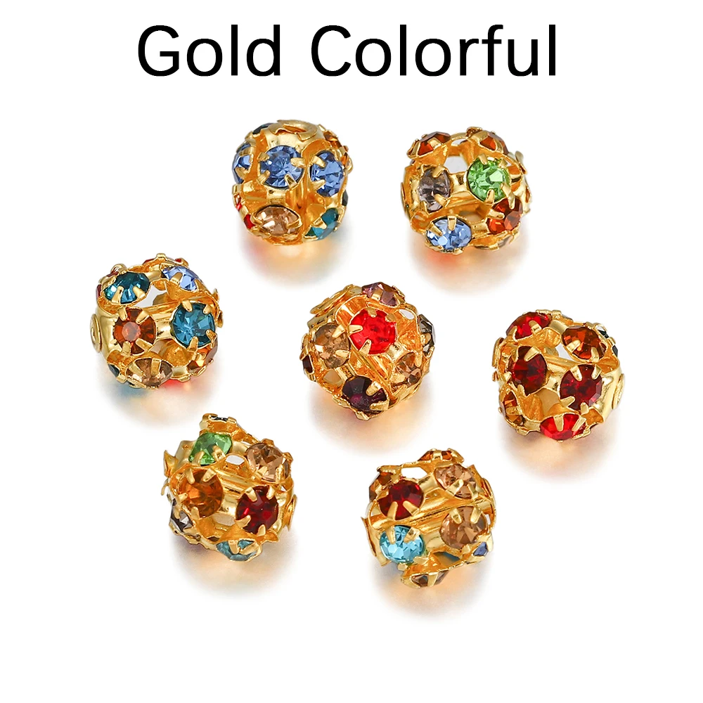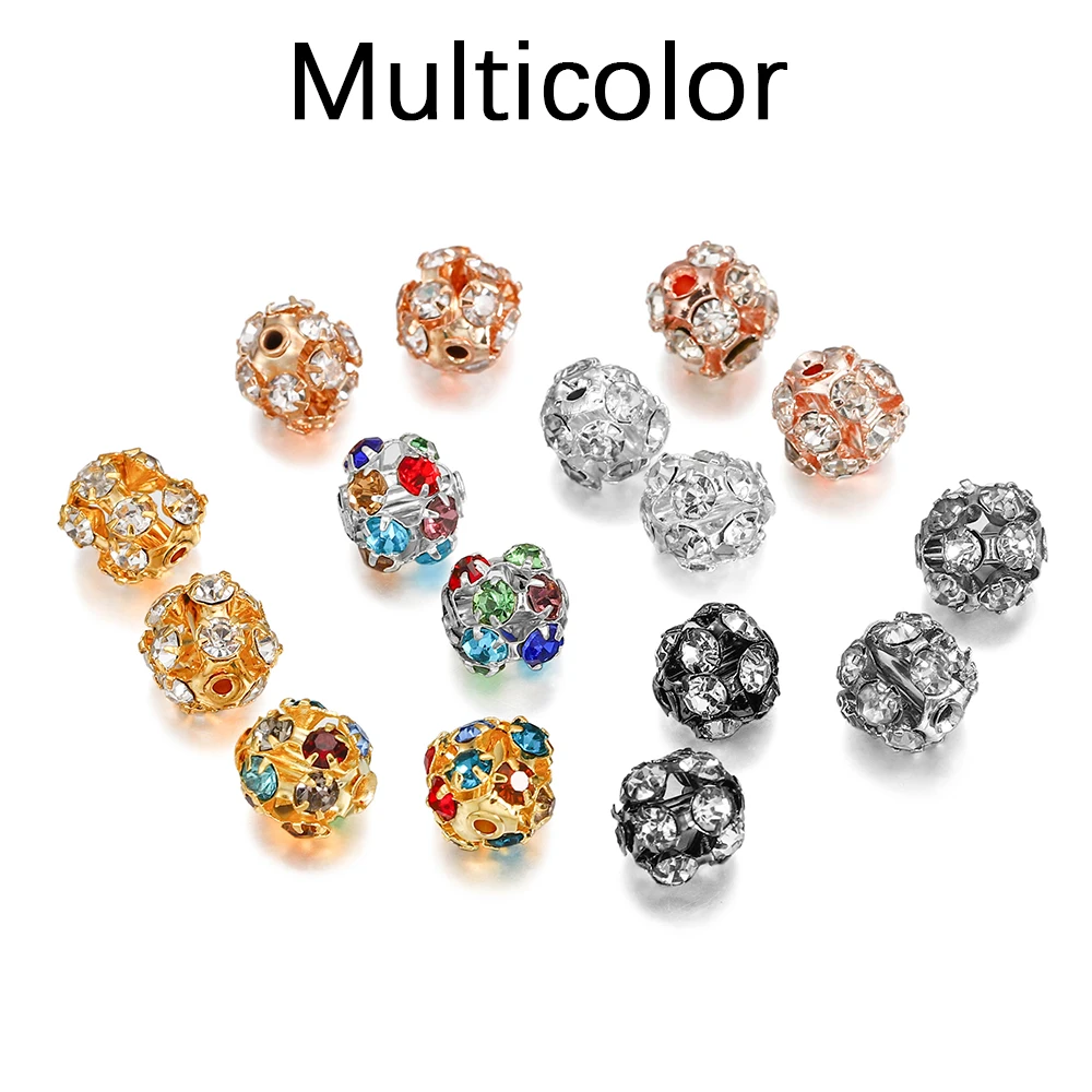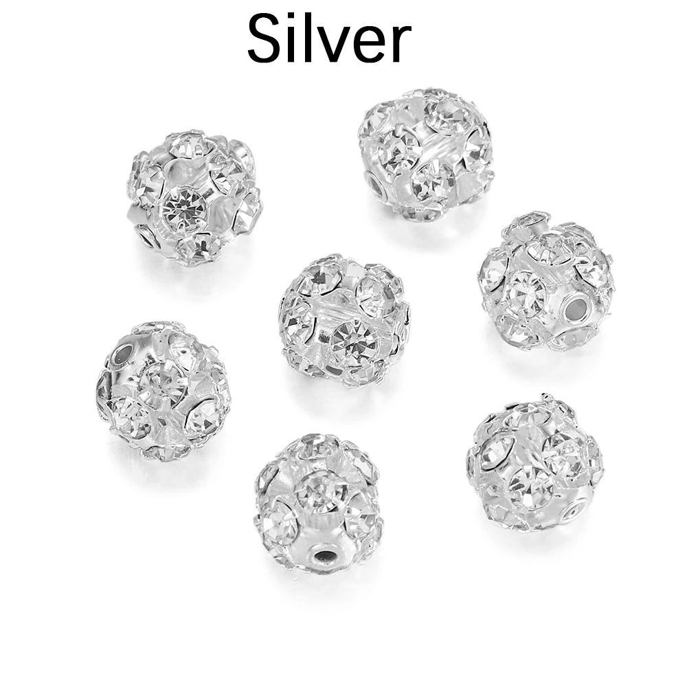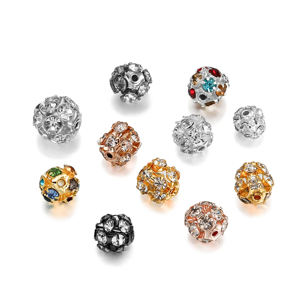 30pcs/lot Imitate Crystal Metal Glass Rhinestone Ball Spacer Loose Beads For DIY Bracelet Jewelry Making Supplies Accessories