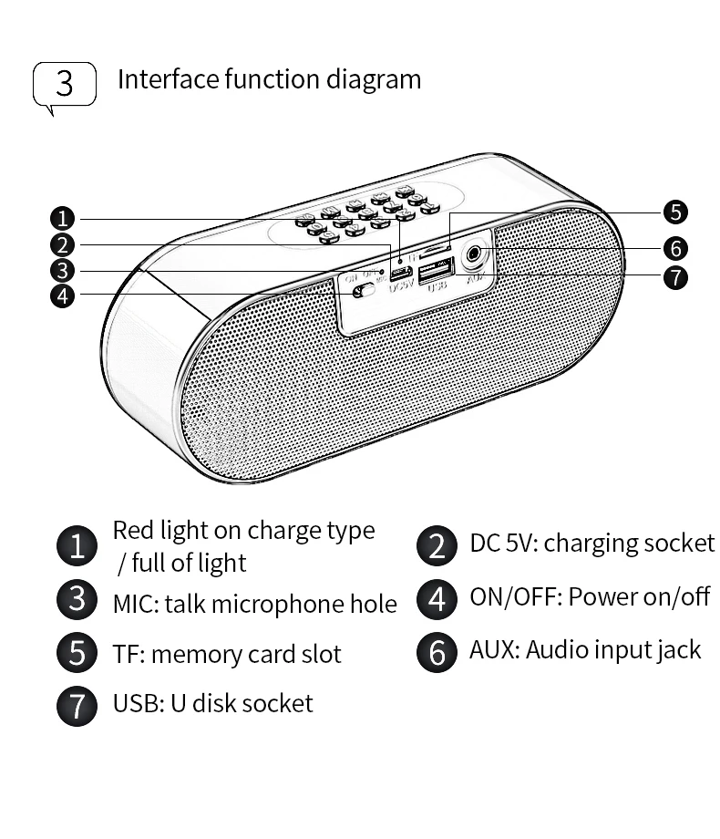 Динамик * 1 зарядный кабель * 1 аудио кабель * 1 руководство * 1 упаковка * 1
