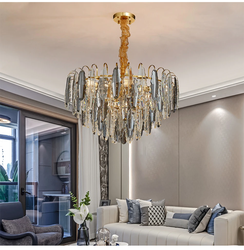 Youlaike роскошный дымчатый серый хрустальный светильник-люстра для гостиной столовой, дома, внутреннего освещения, светильник, современный круглый светодиодный подвесной светильник