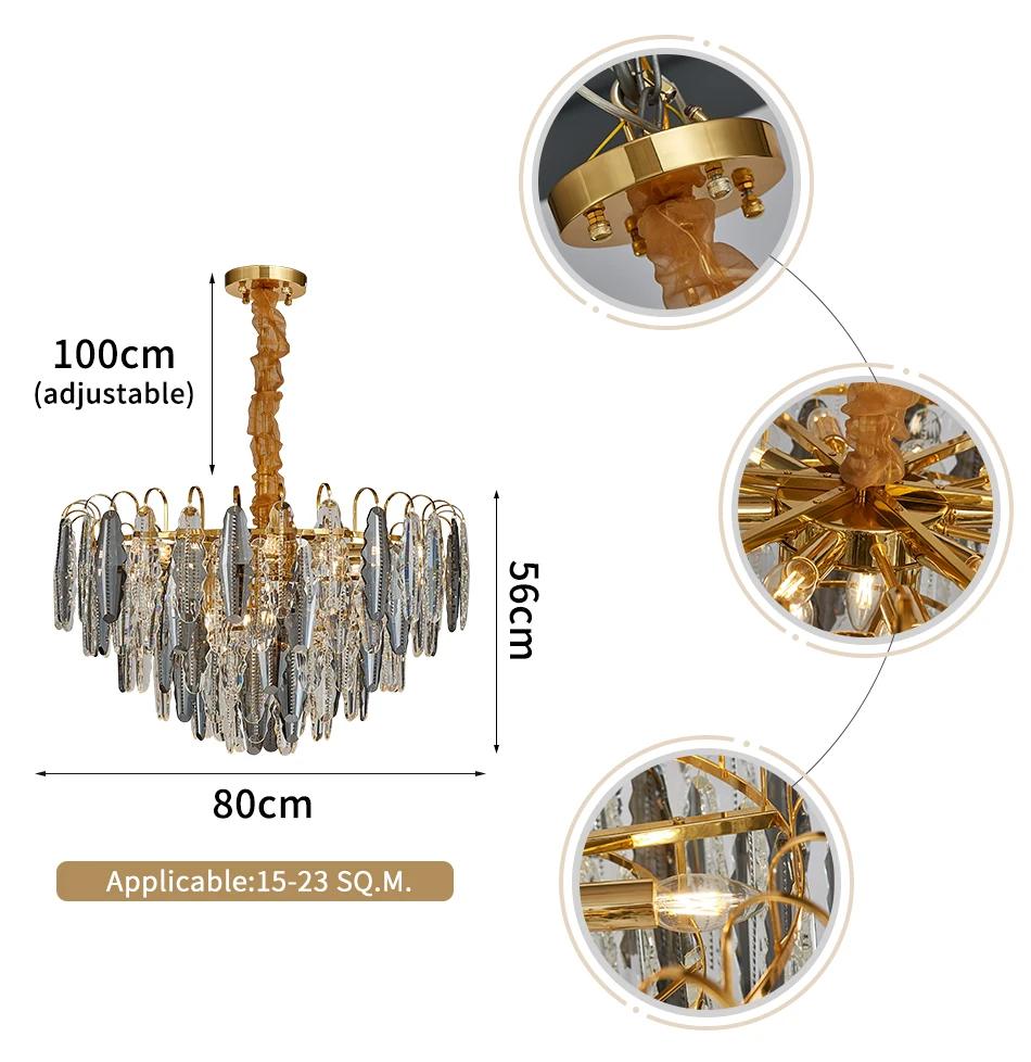 Бренд: Youlaike Номер товара 66278 Стиль товара: современный Материал: металл, хрусталь Размер: диаметр 45 см, диаметр 60 см, диаметр 100 см Источник: светодиодный светильник E14 Цветовая температура: теплый светильник (3000K), холодный светильник (6000K) Напряжение: AC110-240V Доставка: 6-8 дней Применение: гостиная, столовая, спальня