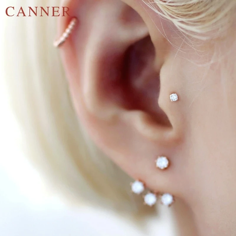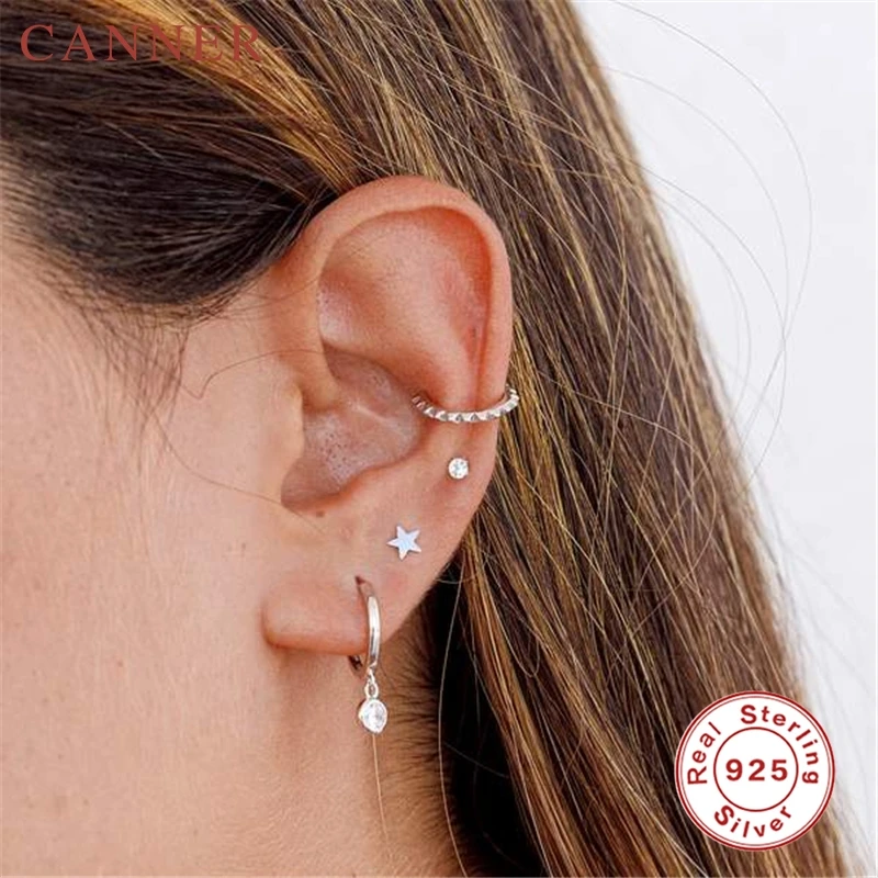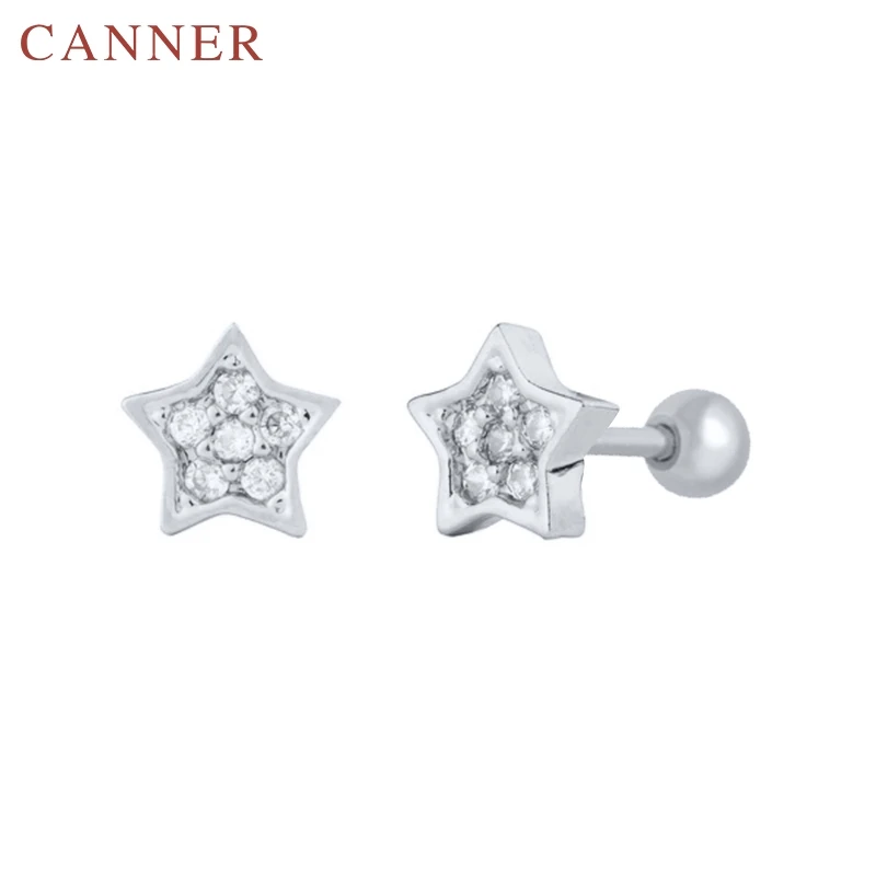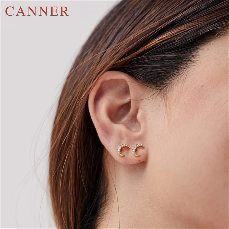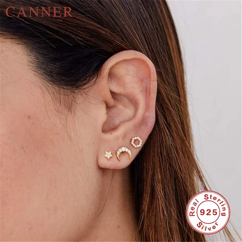 925 Sterling Silver Cute Zircon ear bone nail Mini Moon/Star Stud Earrings Fashion Cute Gold Silver color Piercing Jewelry