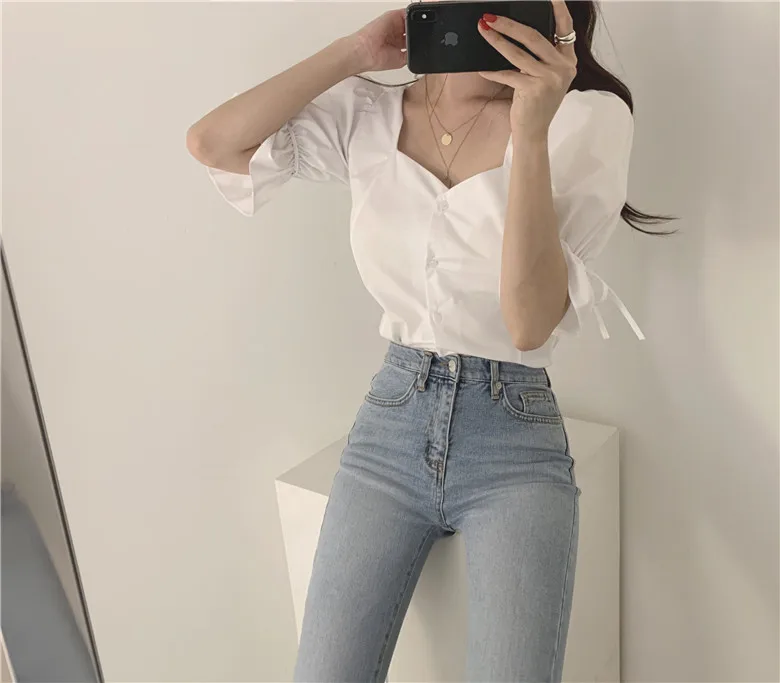 Блузка женская с длинным рукавом ажурная цветочным принтом для офиса на